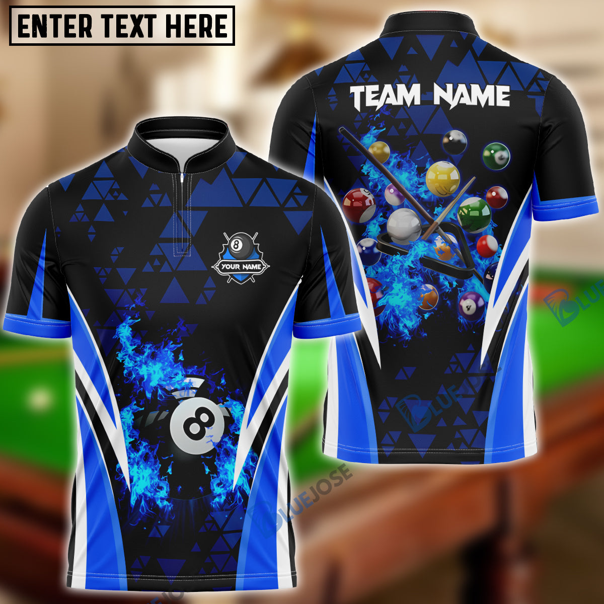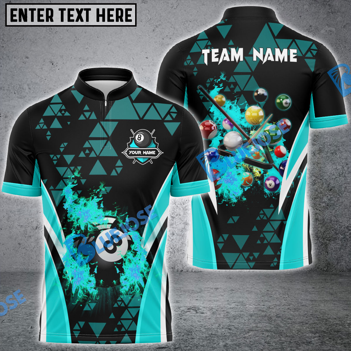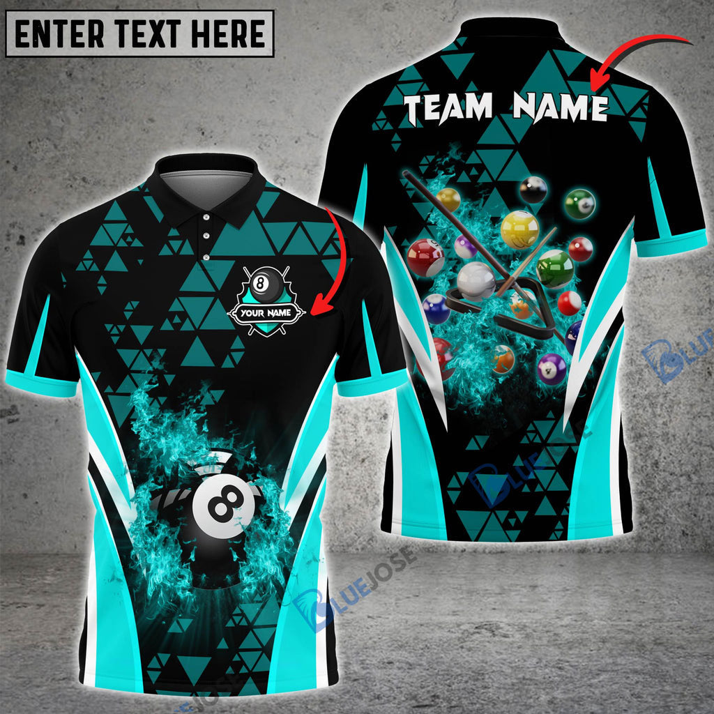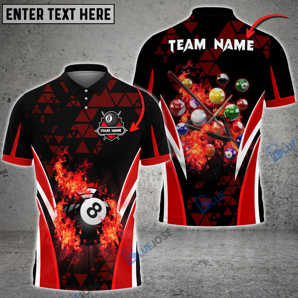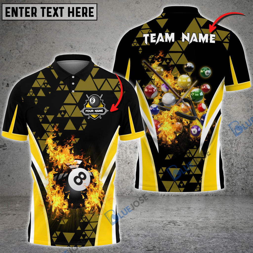 BlueJose Billiards Ball 8 Triangle Flame Personalized Name, Team Name Unisex Shirt ( 4 Colors )