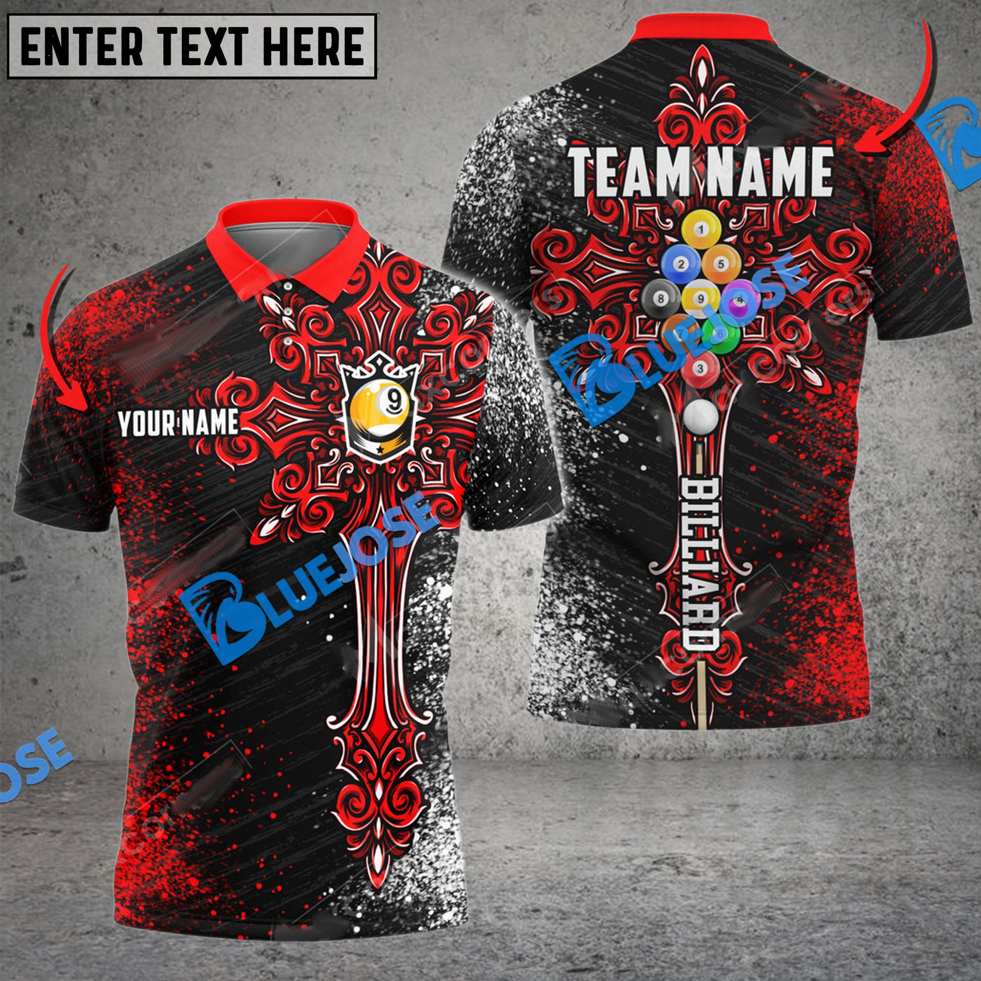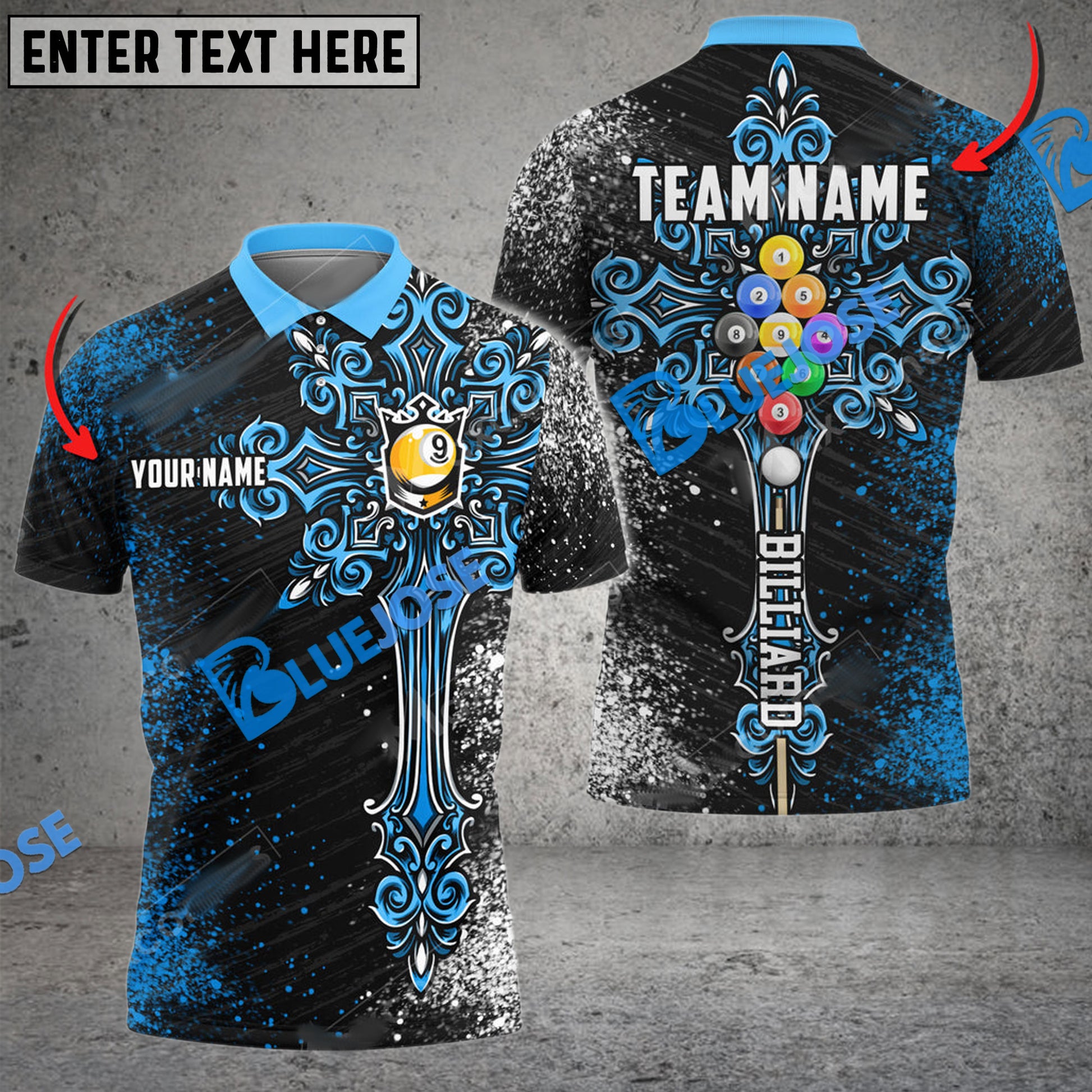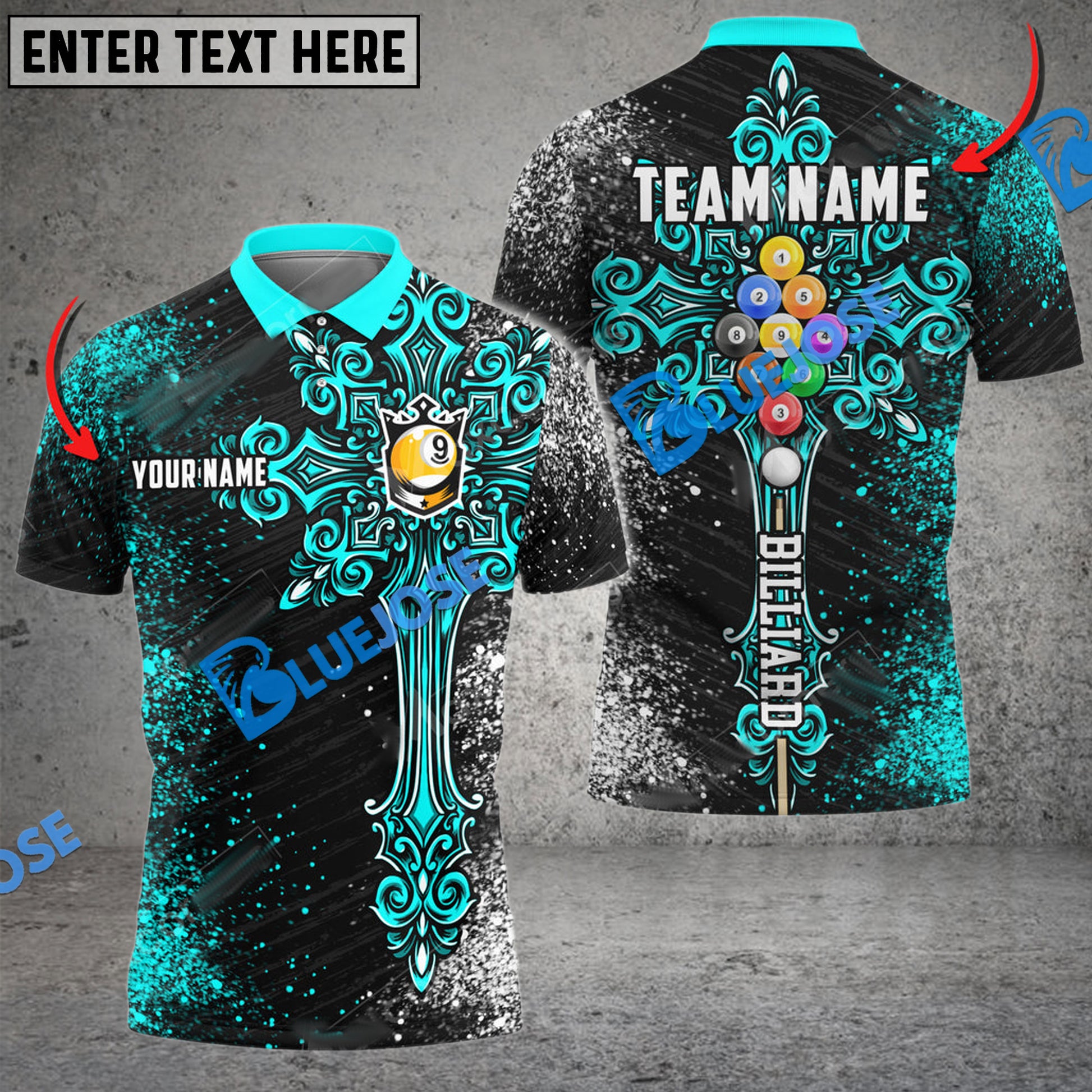 BlueJose Billiards Ball 9 Cross Personalized Name, Team Name Unisex Shirt ( 4 Colors )