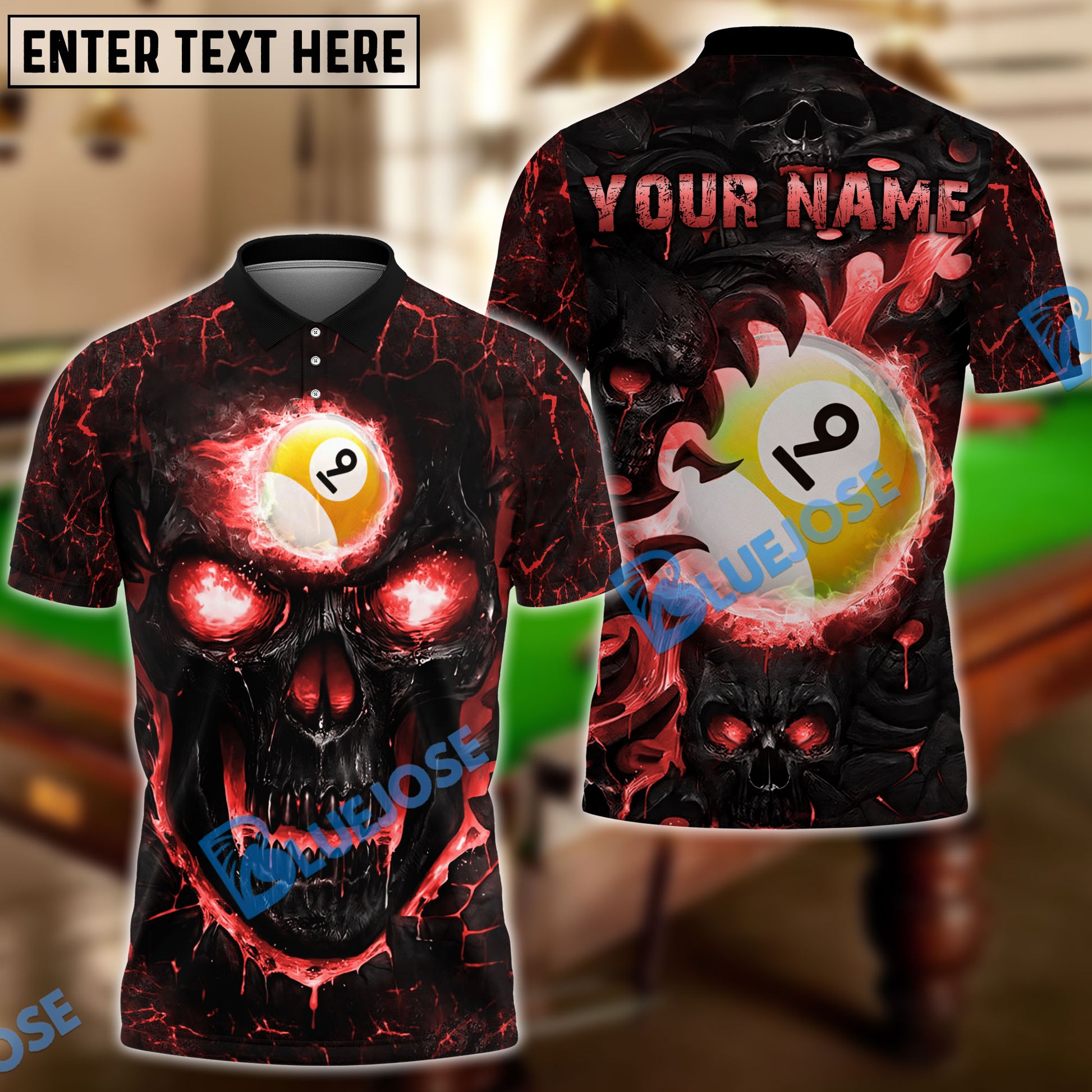 BlueJose Billiards Ball 9 Hell Flame Skull Personalized 3D Shirt ( 4 Colors )