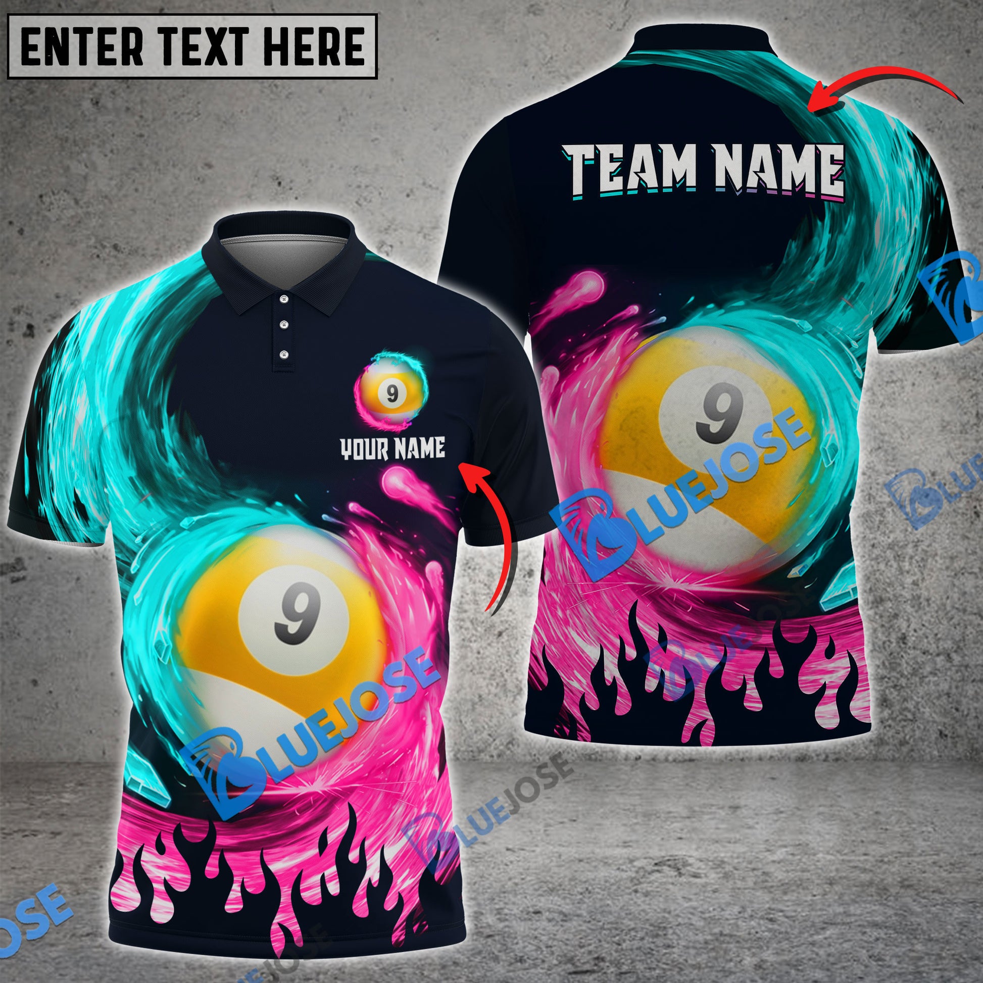 BlueJose Billiards Ball 9 Spinning Paint Personalized Name, Team Name Unisex Shirt ( 4 Colors )