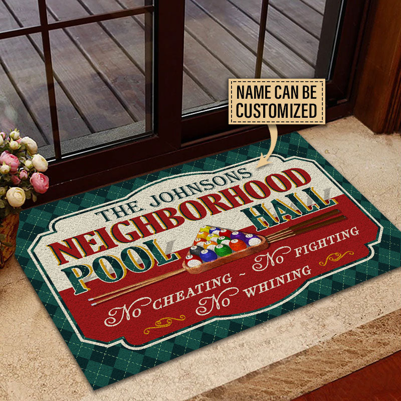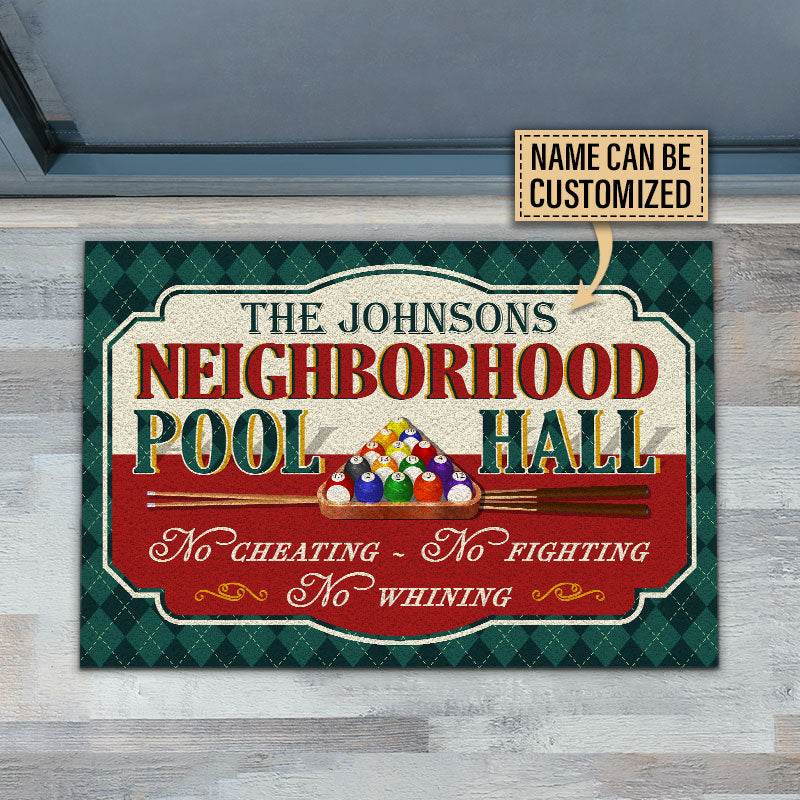 BlueJose Billiards Neighborhood Pool Hall Personalized Name Doormat