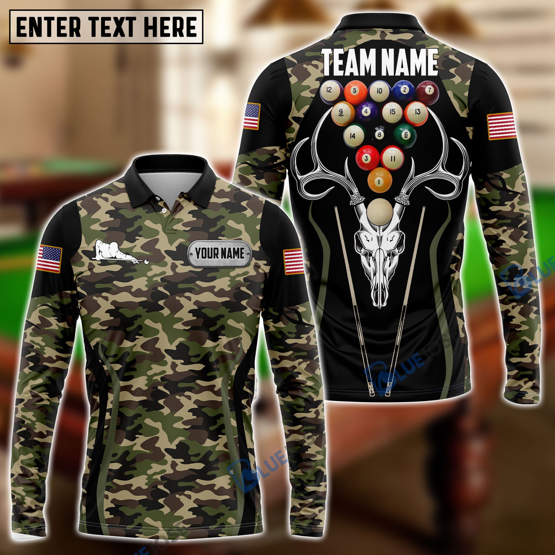 BlueJose Billiards Camo Pattern USA Flag Personalized Name, Team Name Unisex Shirt