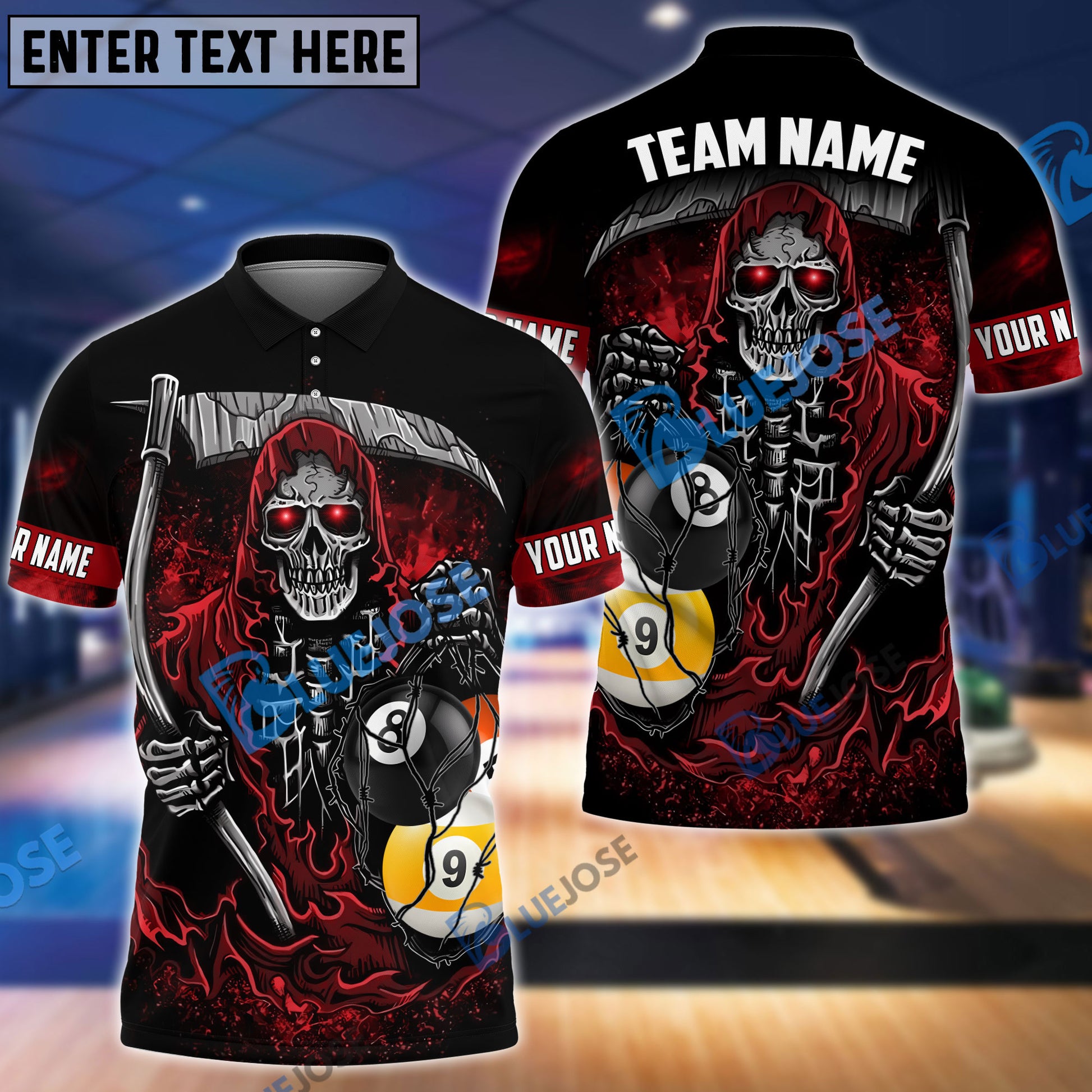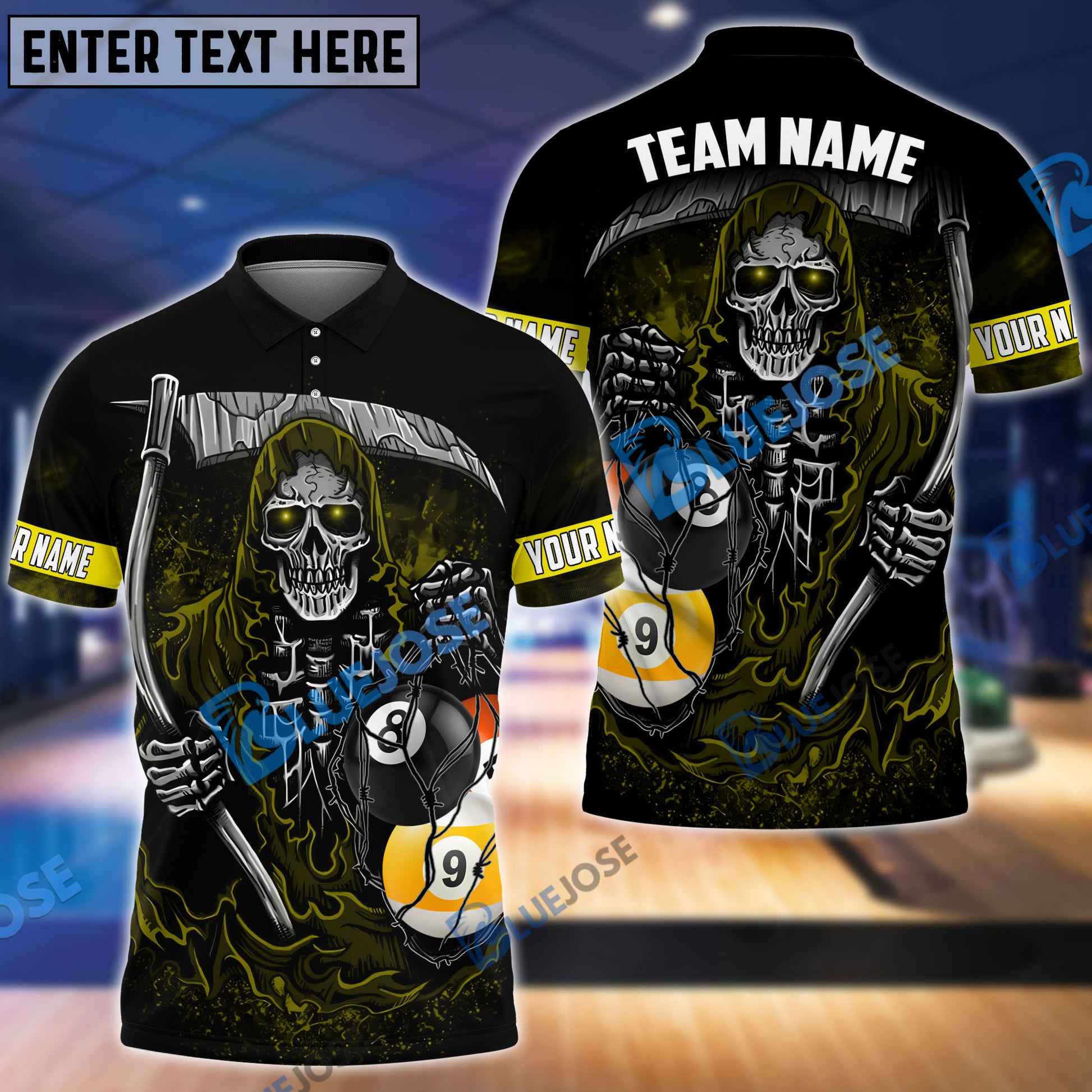 BlueJose Billiards Death Bringer Reaper Personalized Name, Team Name Unisex Shirt ( 4 Colors )