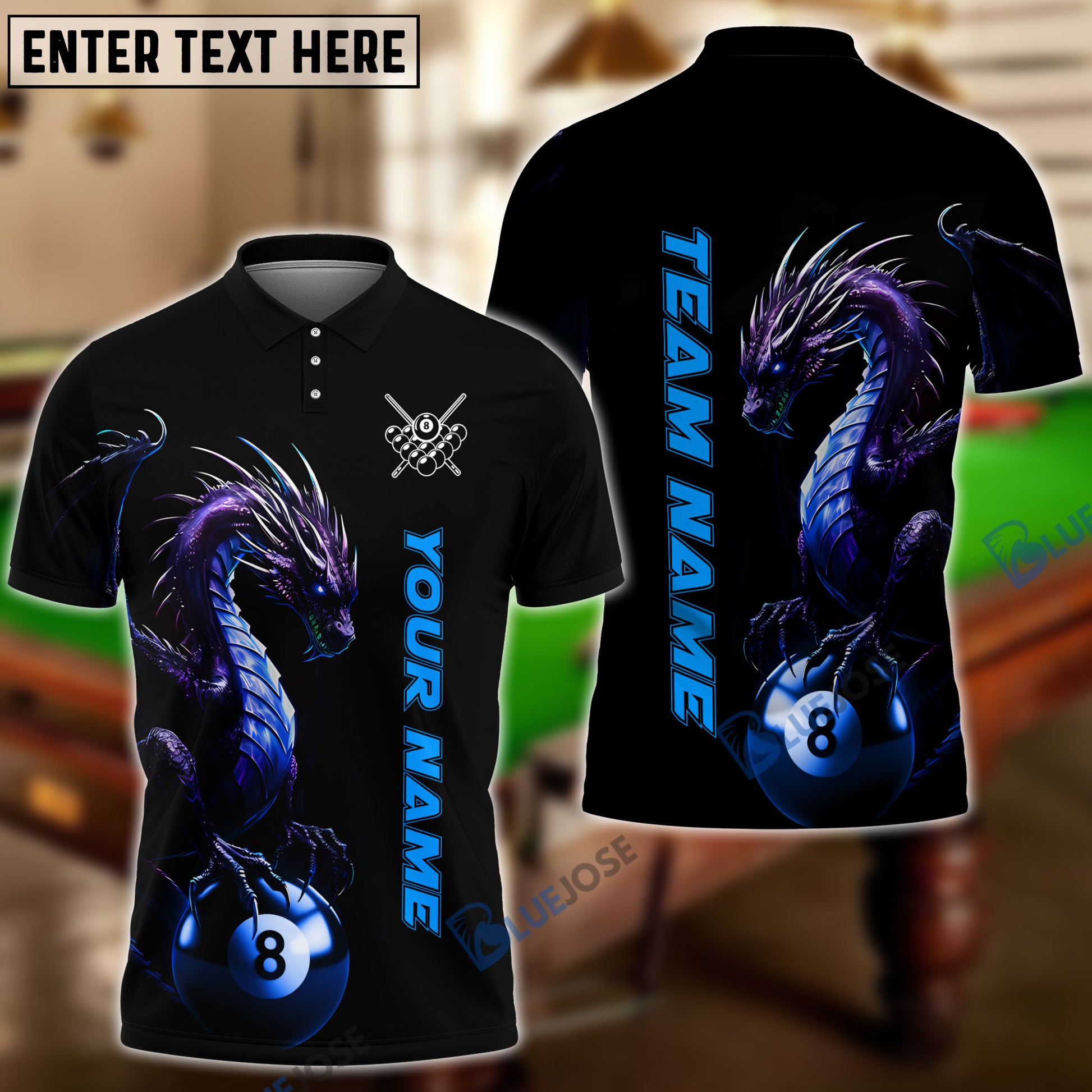 BlueJose Billiards Dragon Personalized Name, Team Name Shirt