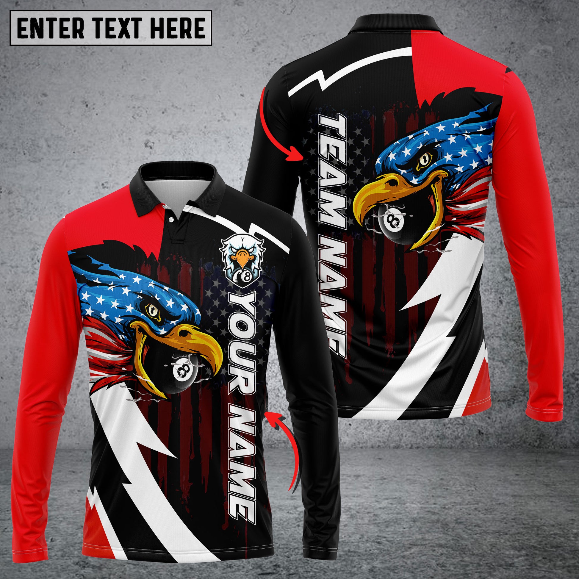 BlueJose Billiards Eagle US Flag Personalized Name 3D Shirt