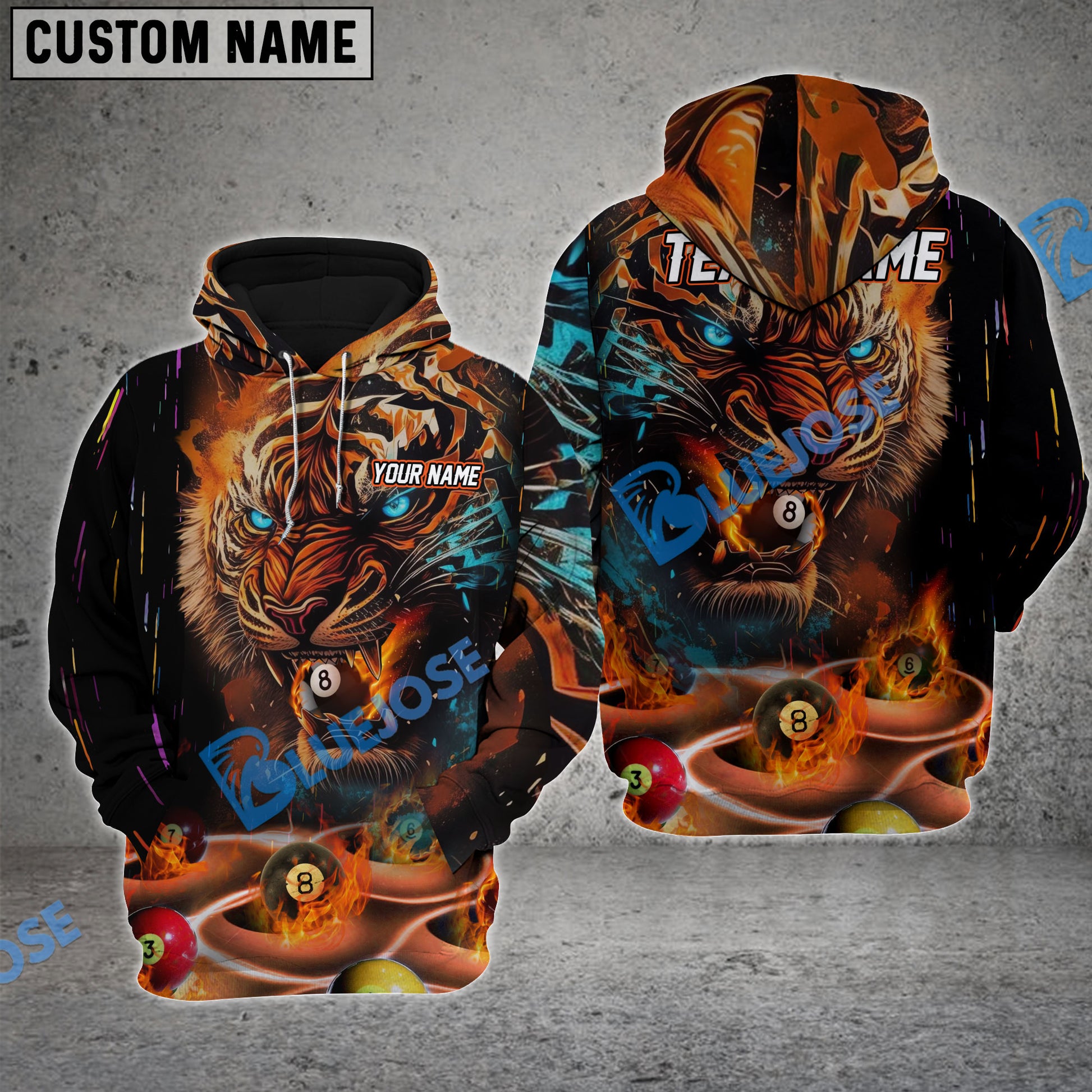 BlueJose Billiards Fire Tiger Premium Personalized Name, Team Name Unisex Shirt