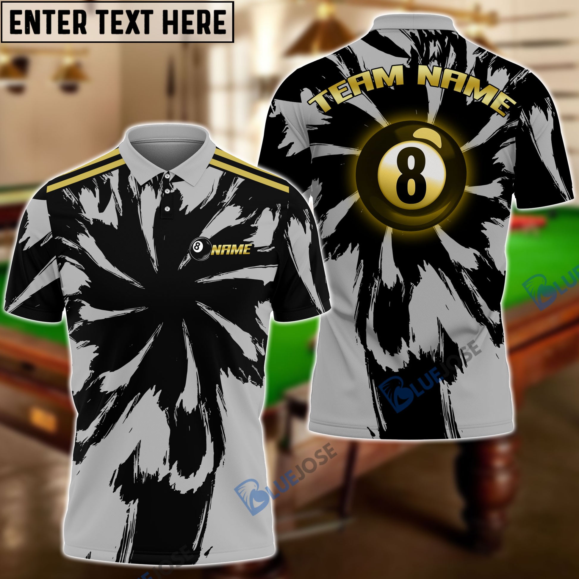 BlueJose Billiards Grey Storm Personalized Name Shirt