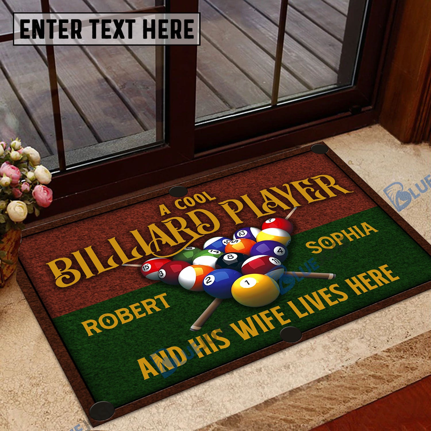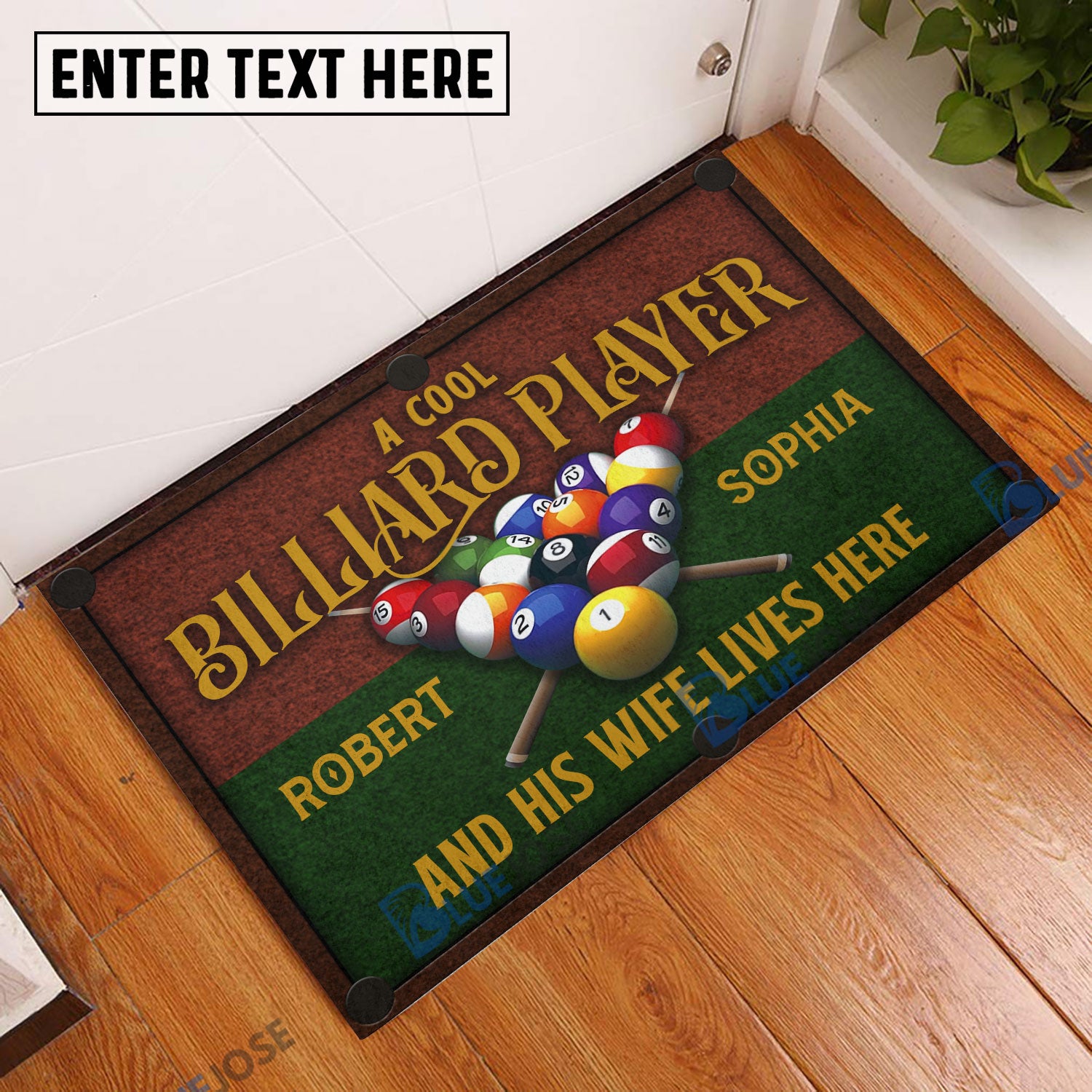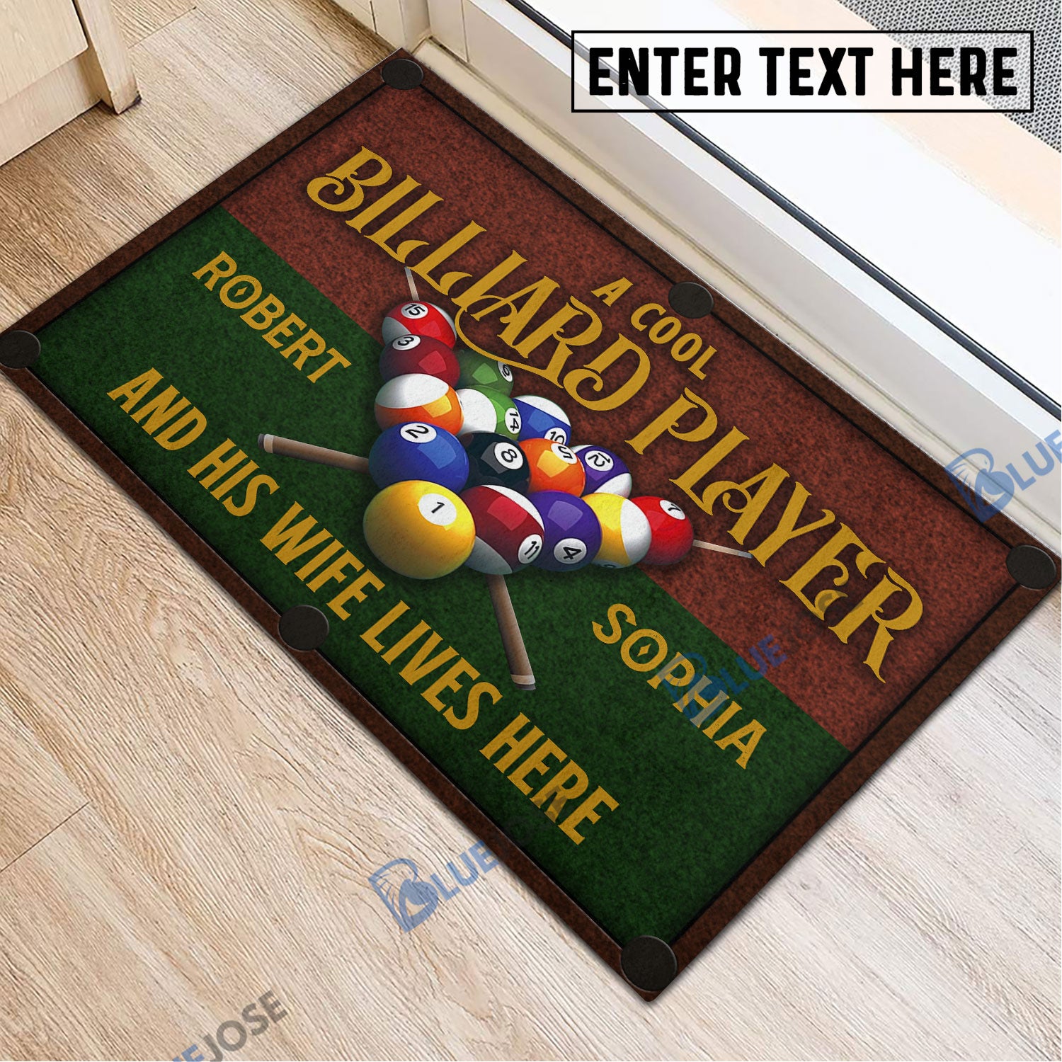 BlueJose Billiards Players & His Wife Personalized Name Doormat