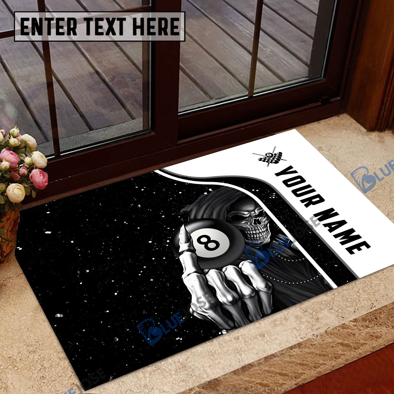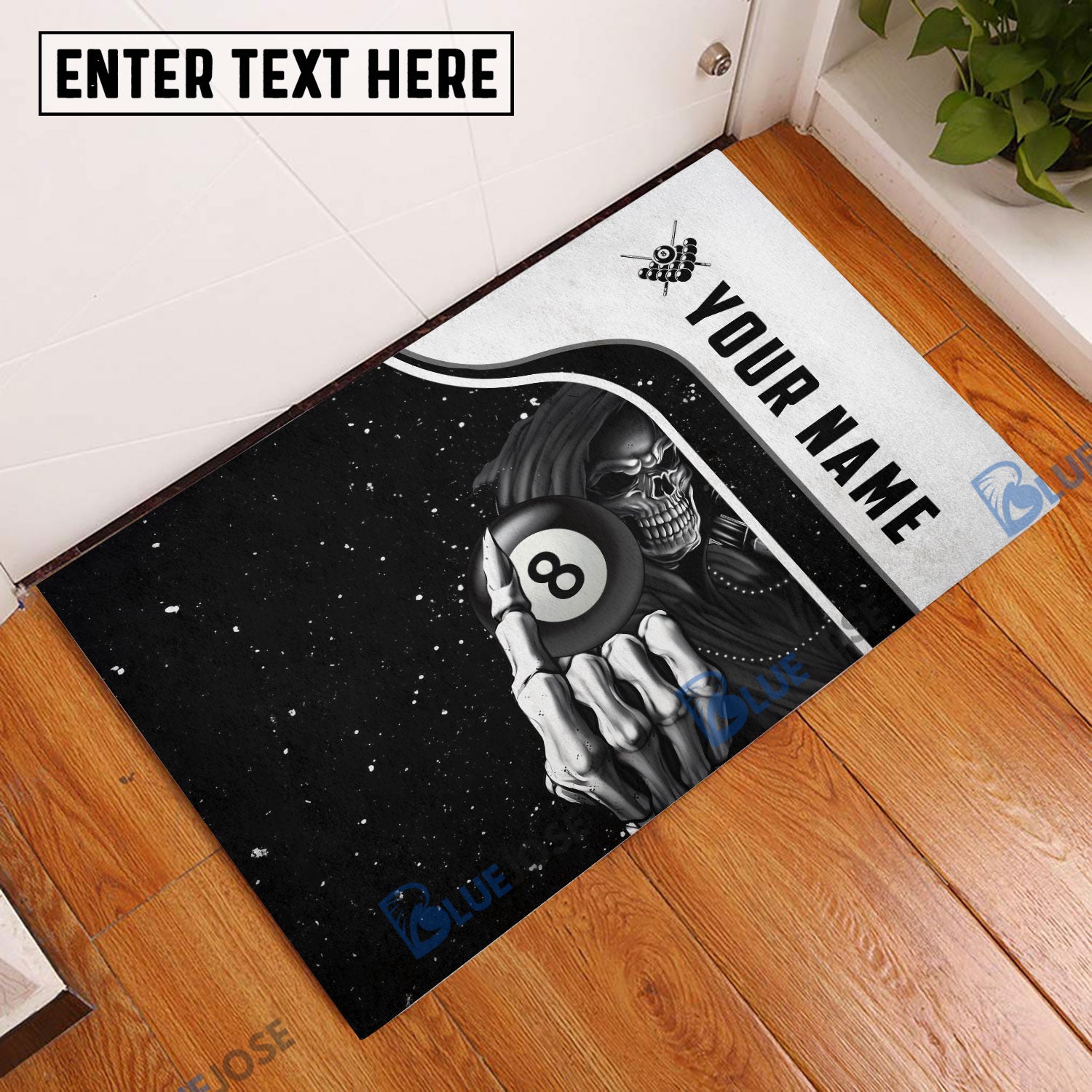 BlueJose Billiards Reaper Black Personalized Name Doormat