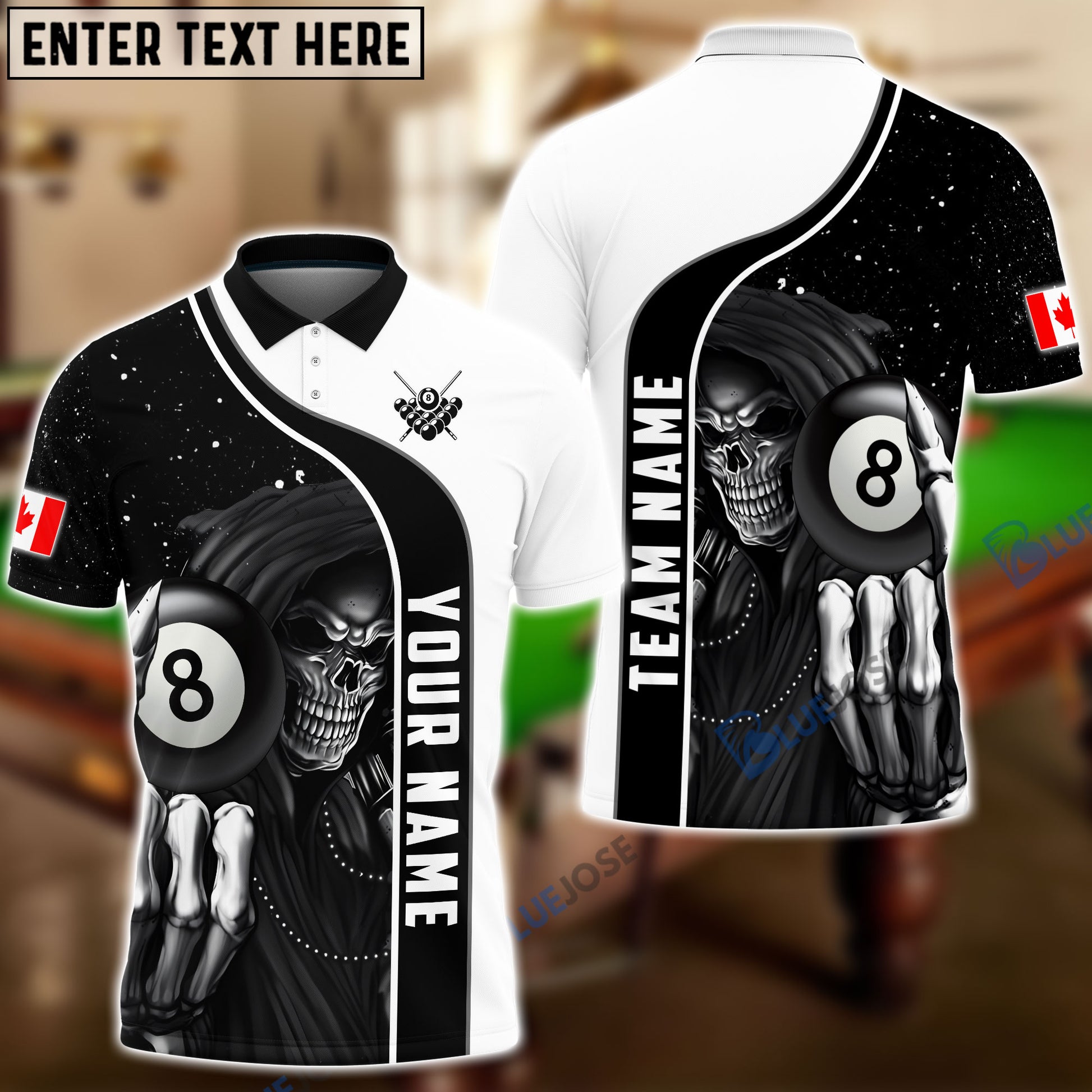 BlueJose Billiards Reaper CA Flag Personalized Name, Team Name 3D Shirt