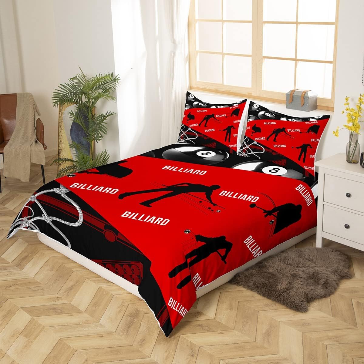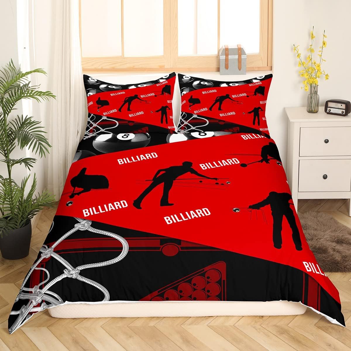 BlueJose Billiards Red and Black Geometric Ball Ombre Bedding Set
