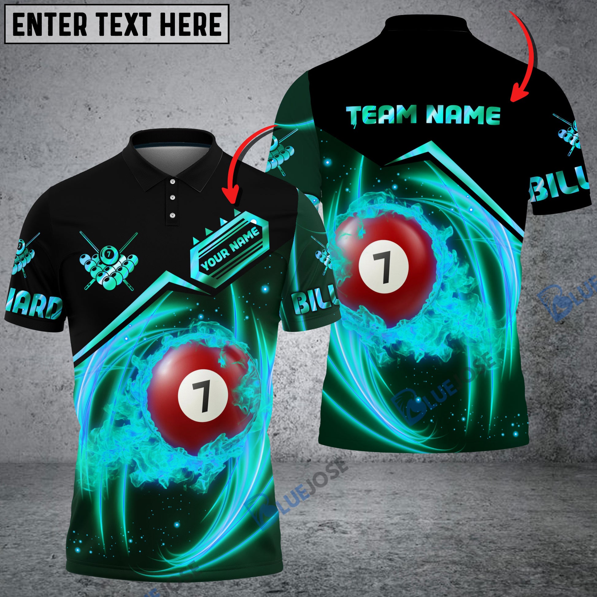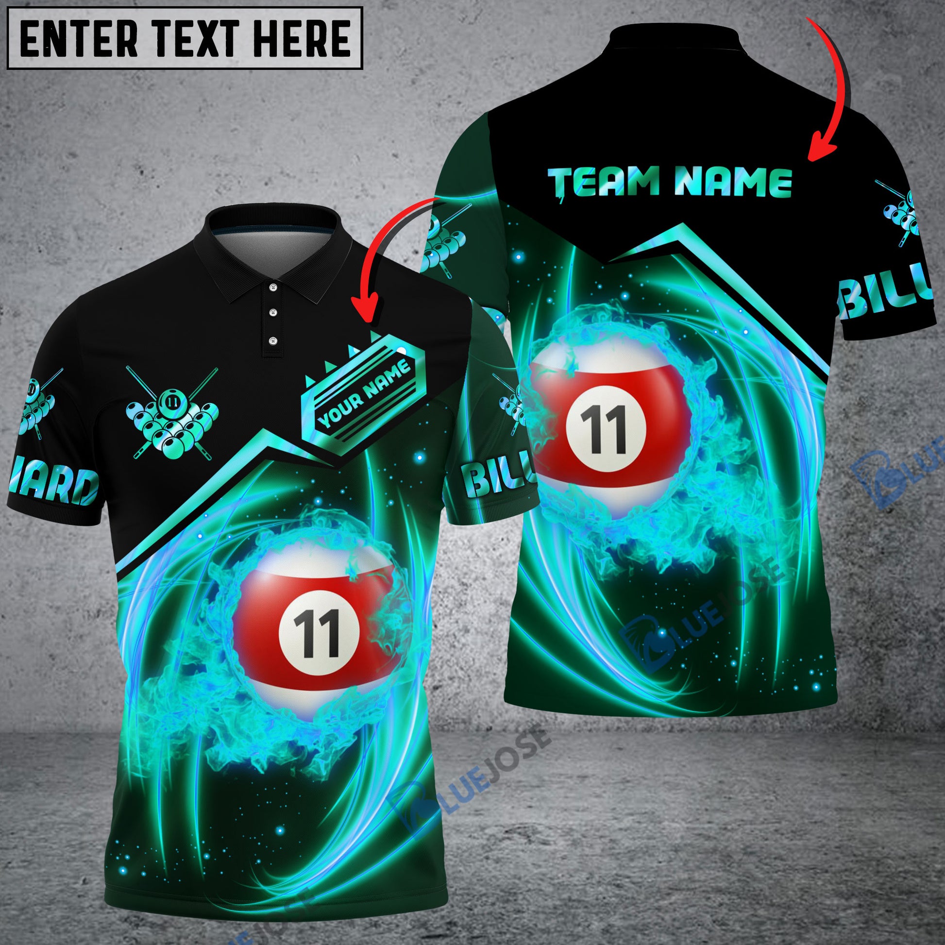 BlueJose Billiards Rock 7 Ball & 11 Ball Personalized Name, Team Name 3D Shirt