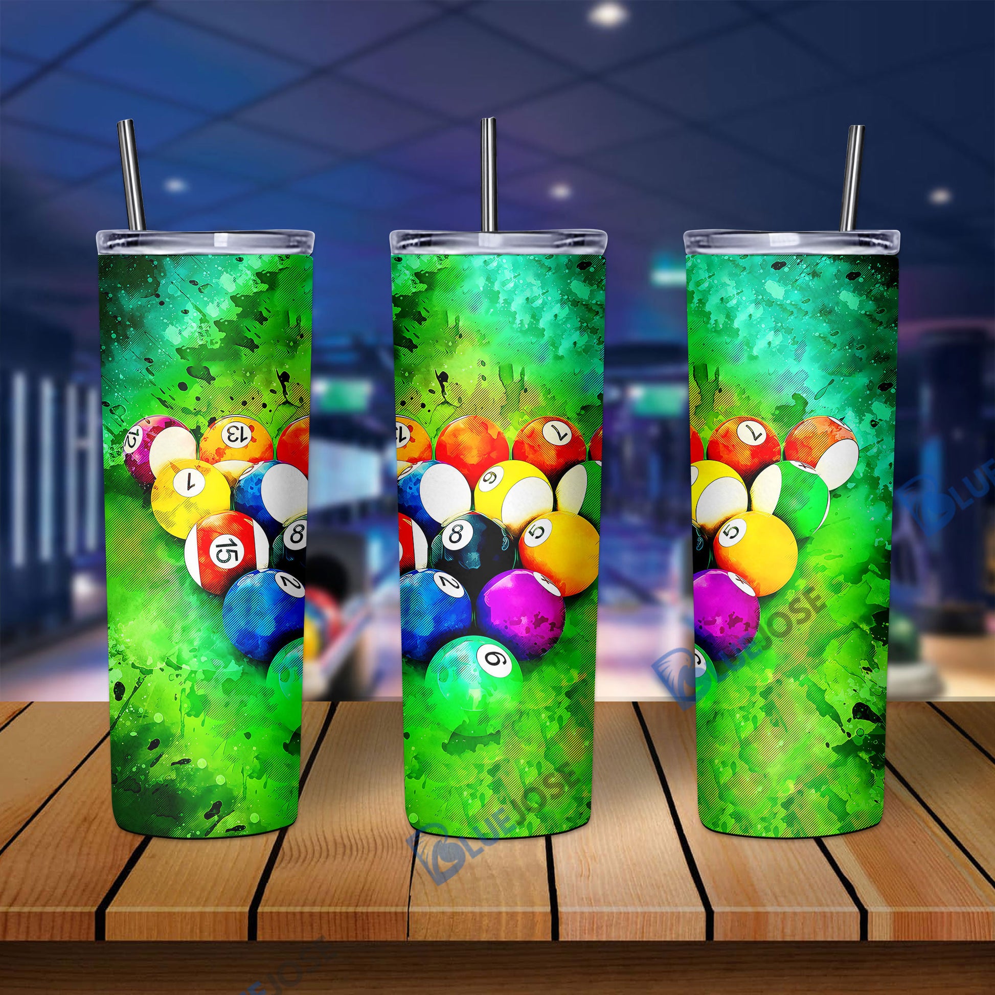 BlueJose Billiards Green Watercolor Skinny Tumbler