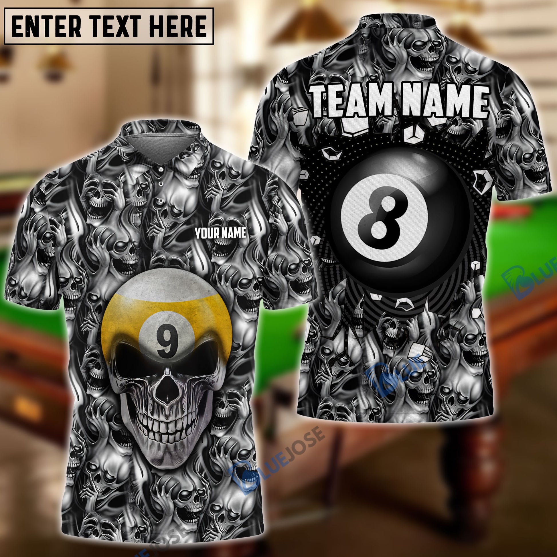 BlueJose Billiards Skull 8&9 Ball Customized Name, Team Name Unisex Shirt
