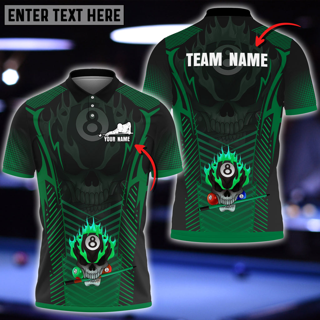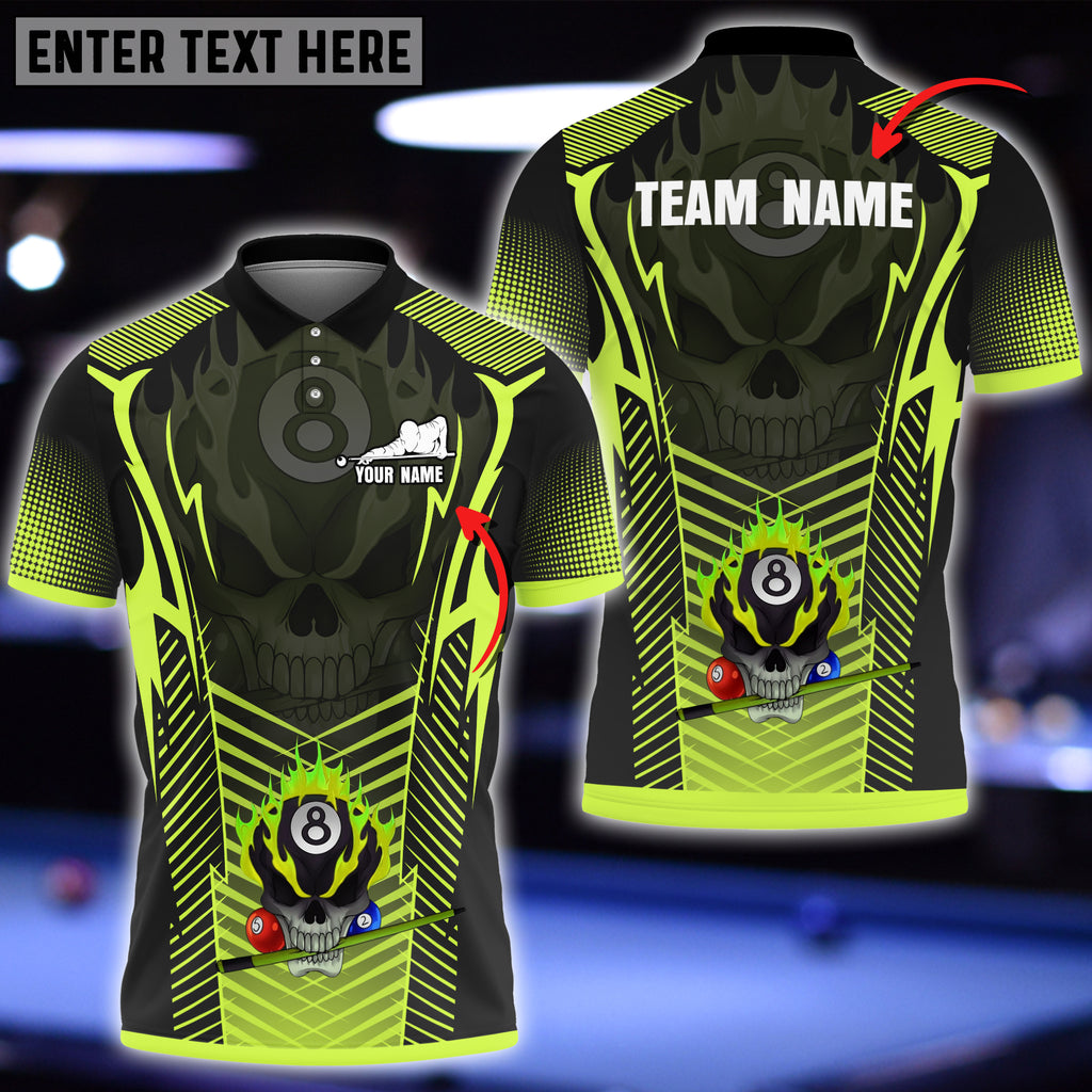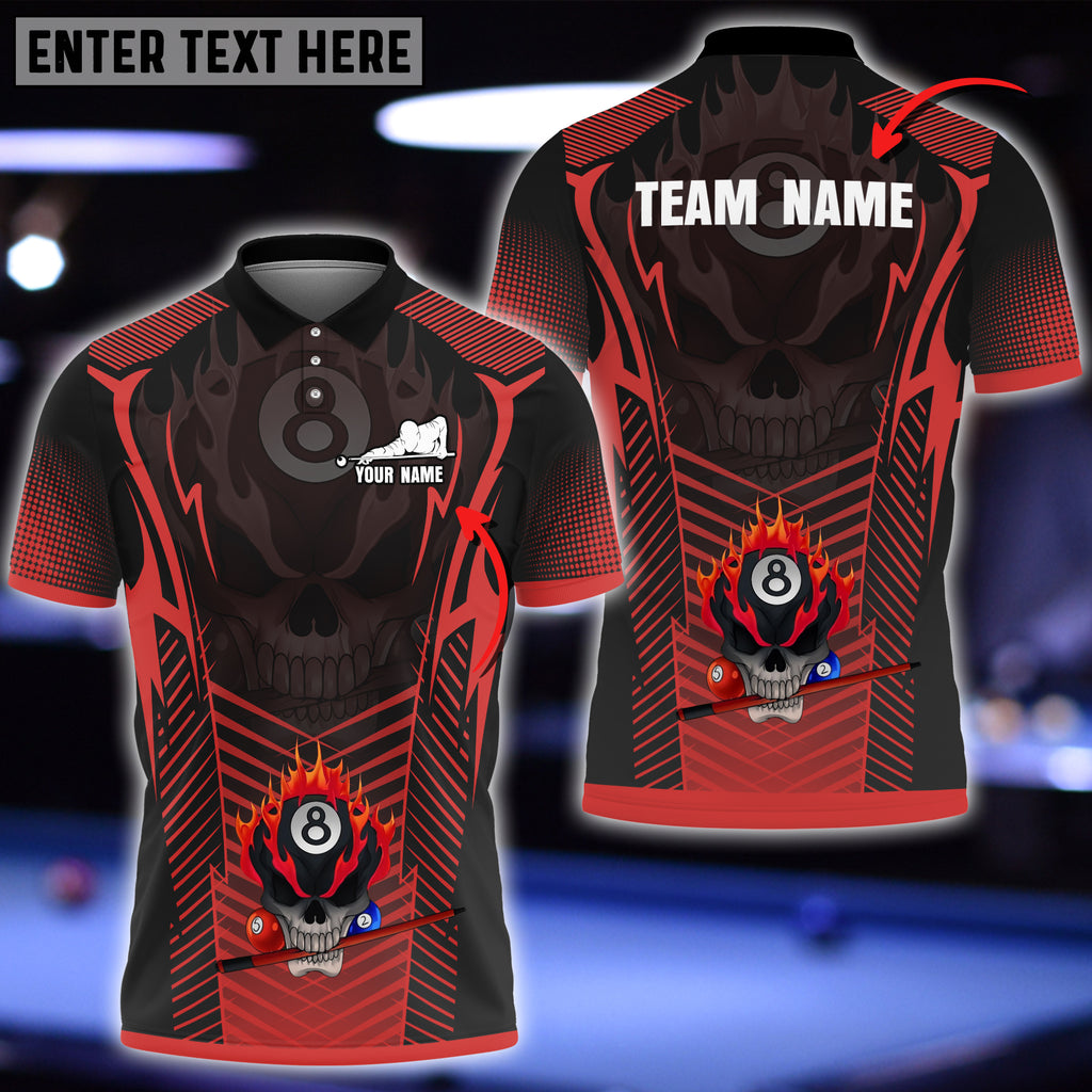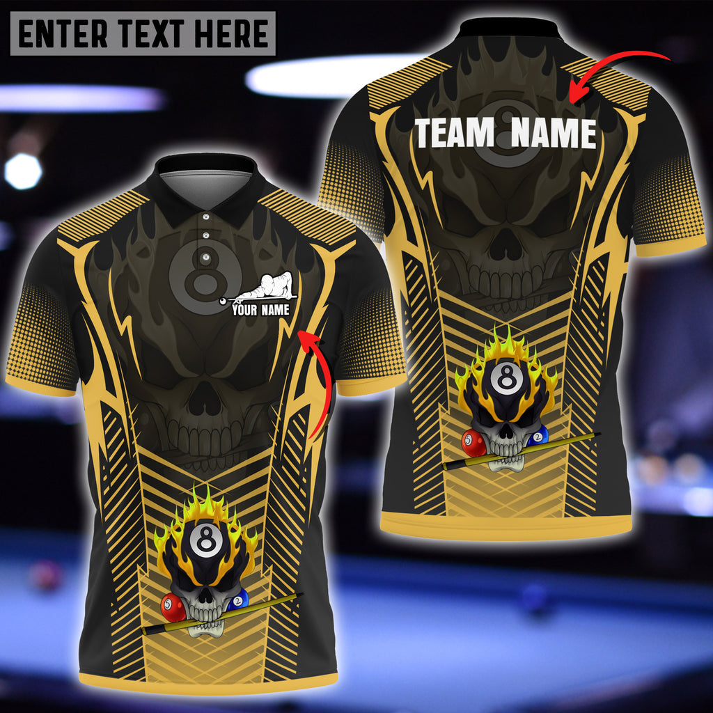 BlueJose Billiards Skull Colorful Personalized Name & Team Name Polo Shirt (8 Colors)