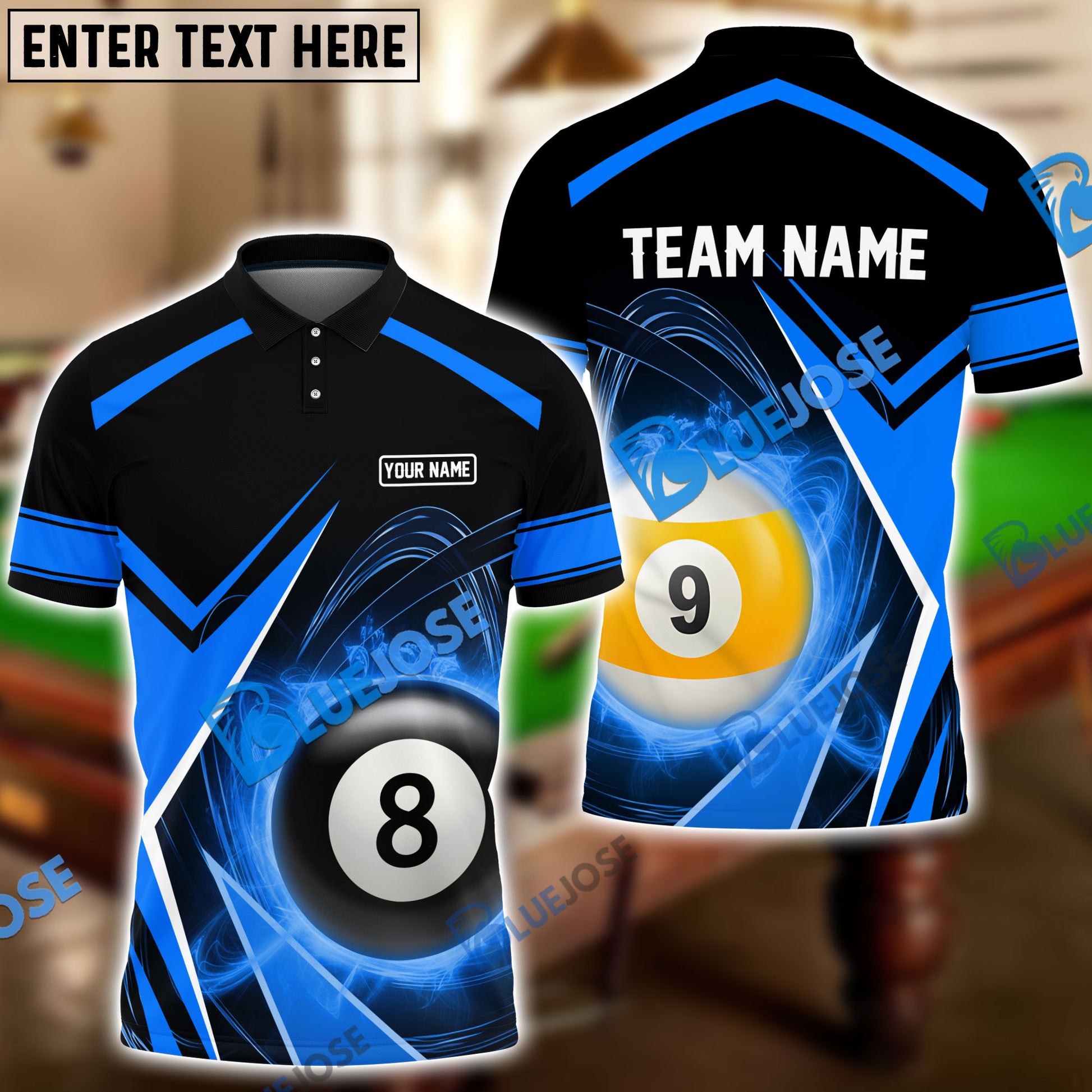 BlueJose Billiards Stormeye Personalized Name, Team Name Unisex Shirt ( 6 Colors )