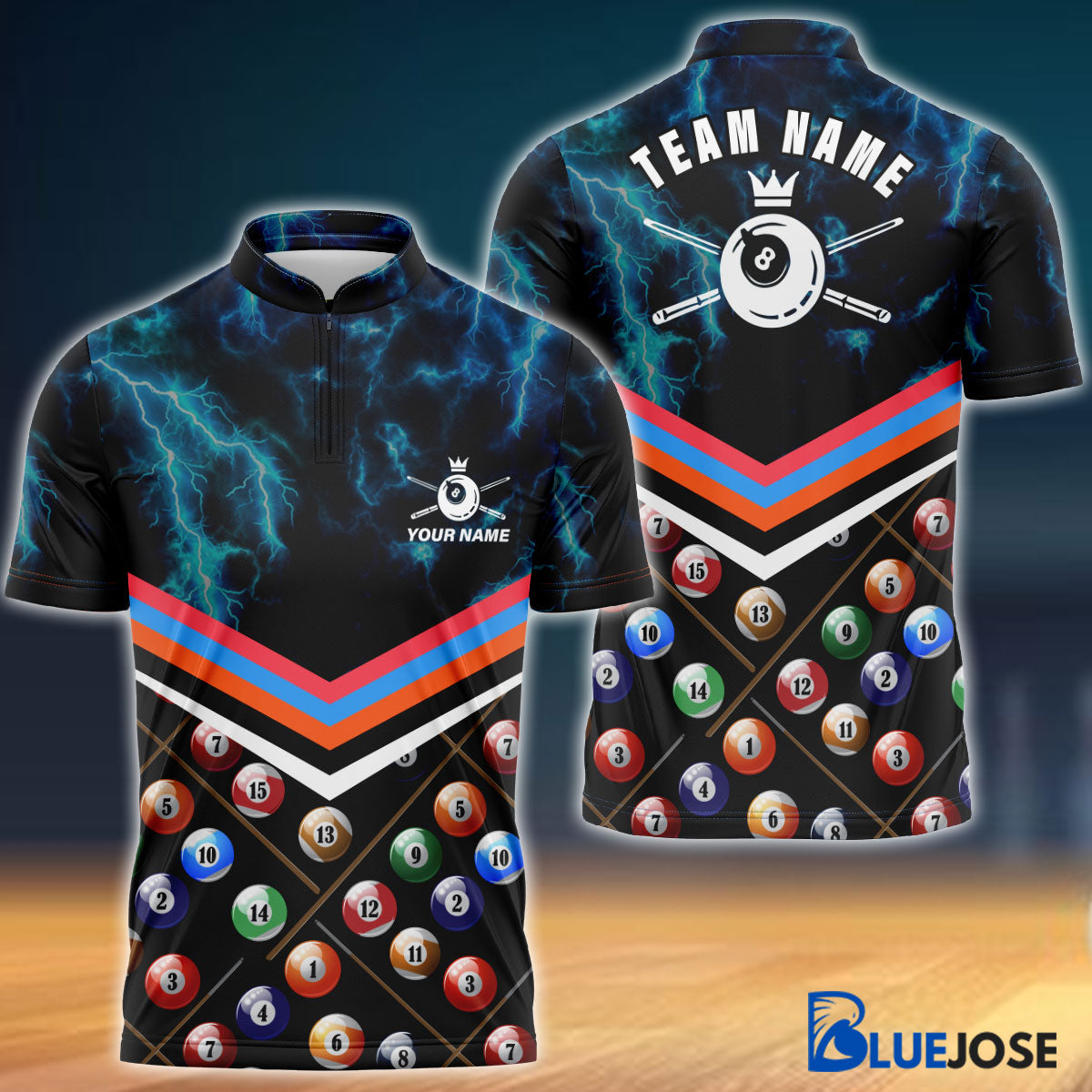 BlueJose Billiards Thunder Pattern Personalized Name, Team Name 3D Shirts