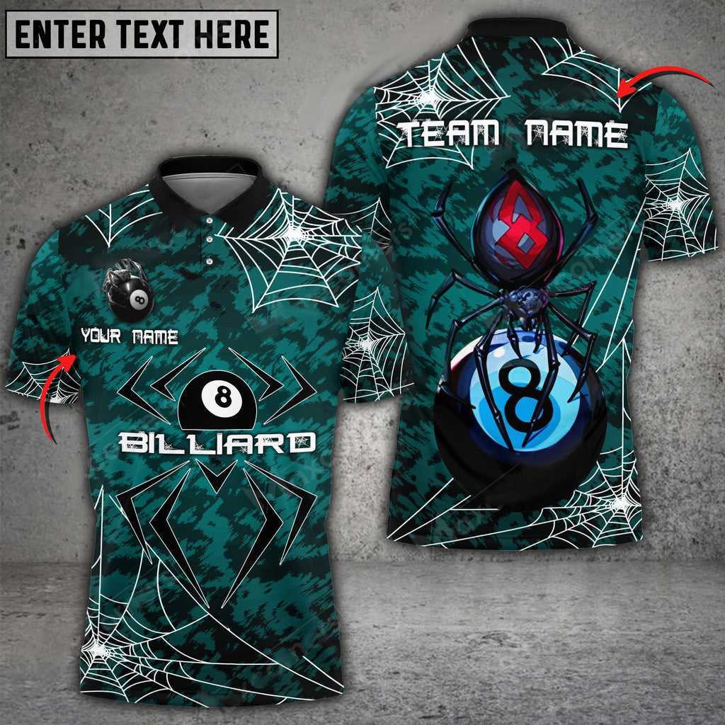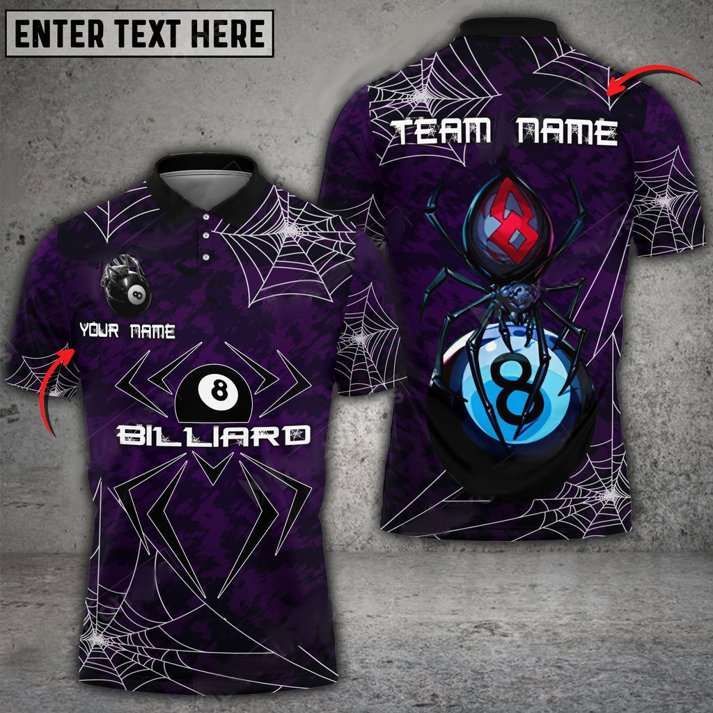 BlueJose Billiards Unique Spider Cobweb Personalized Name, Team Name Unisex Shirt ( 4 Colors )
