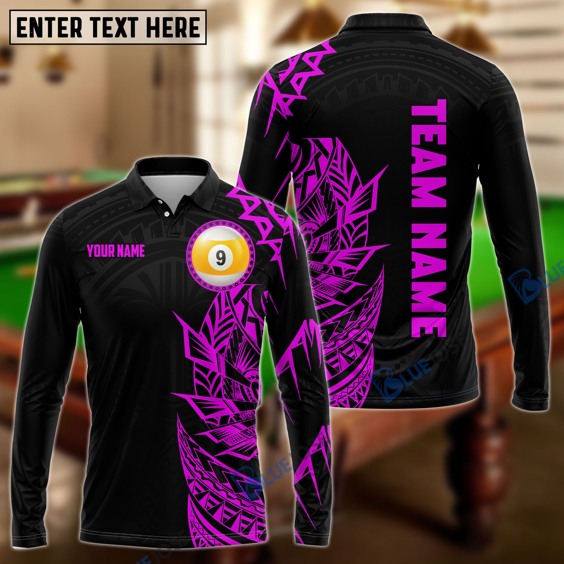 BlueJose Billiards Viking Pink & Black Pattern Personalized Name, Team Name Shirt