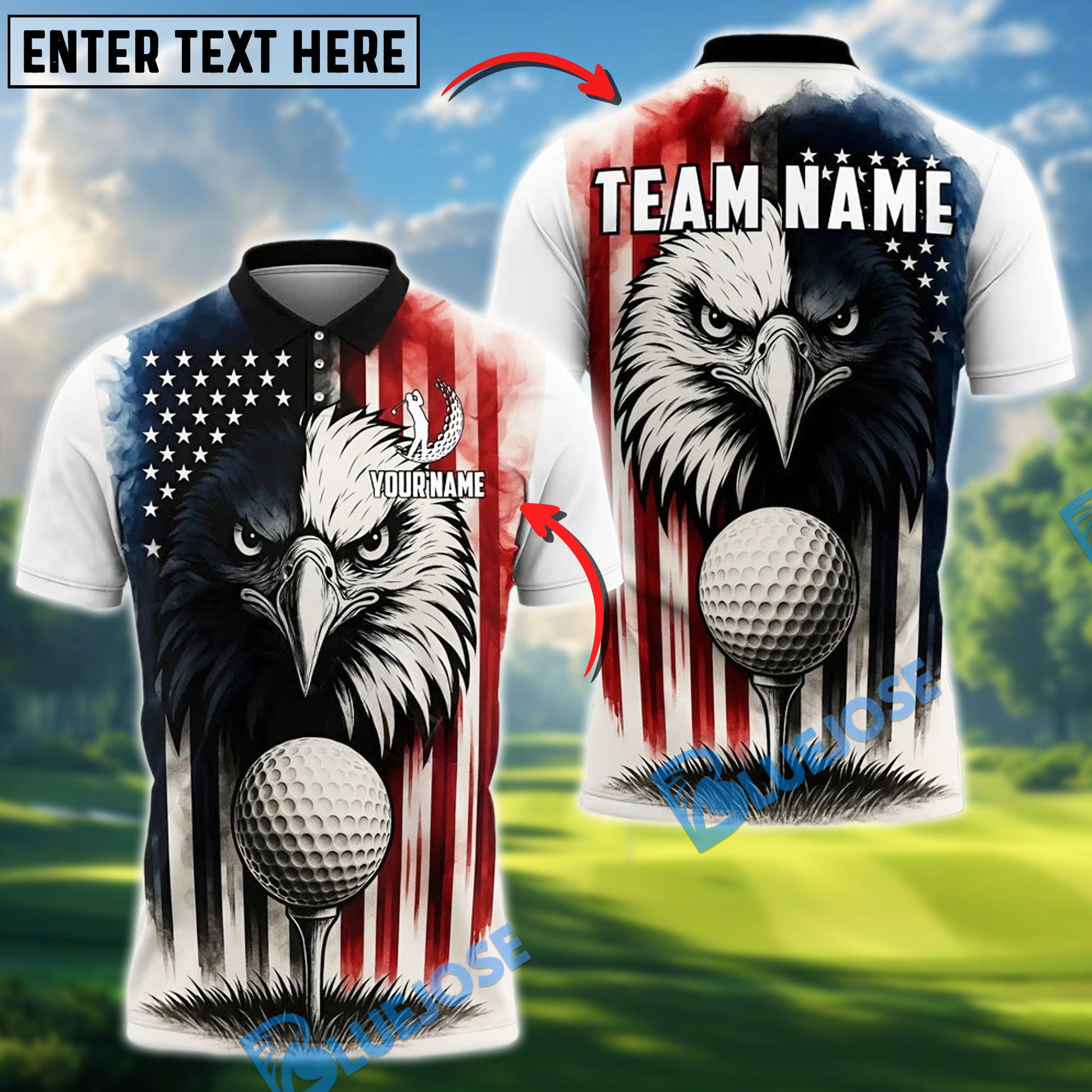 BlueJose Black White Golf Eagle US Flag Custom Name, Team Name 3D Shirts