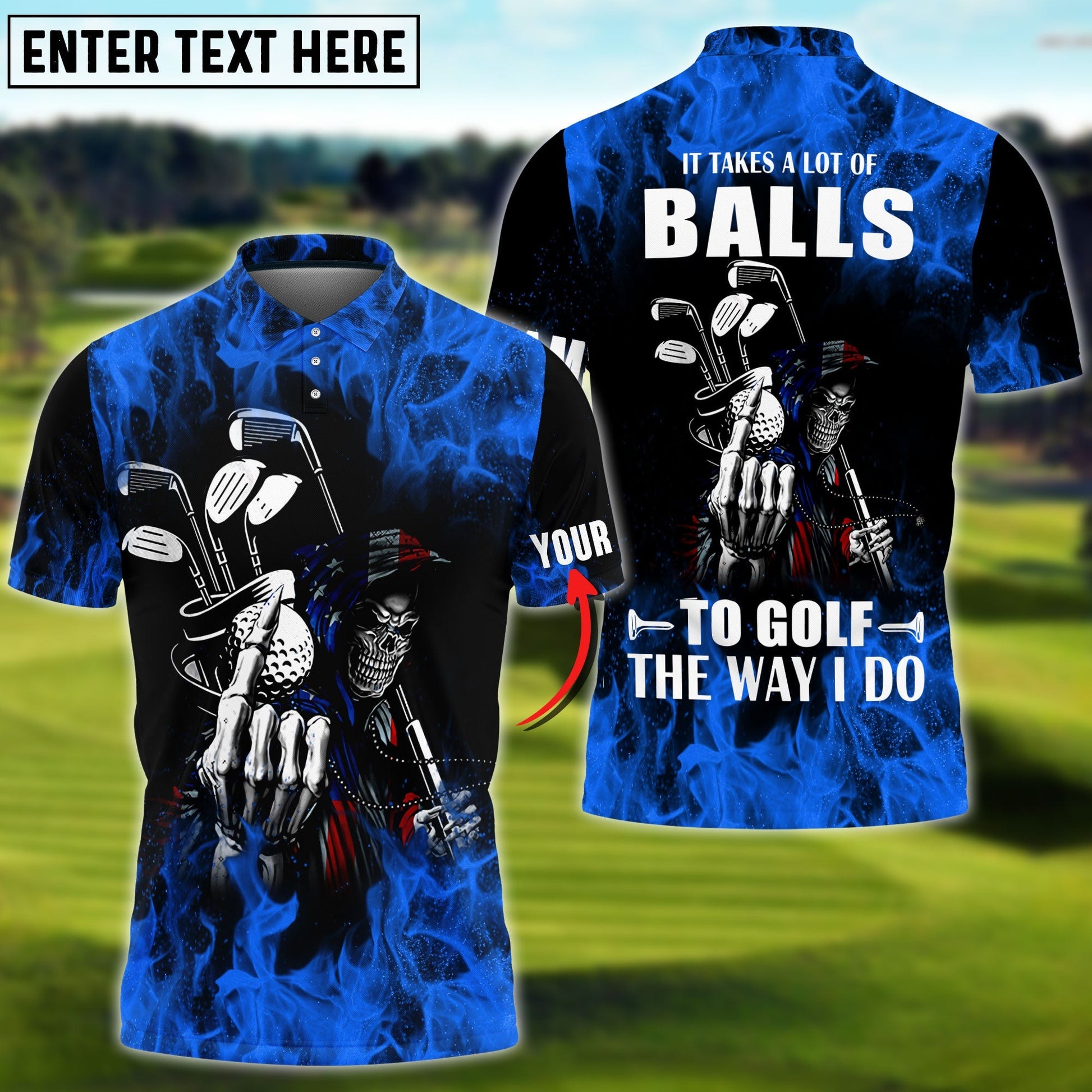 BlueJose Blue Flame Golf Skull Personalized Name, Team Name 3D Shirt