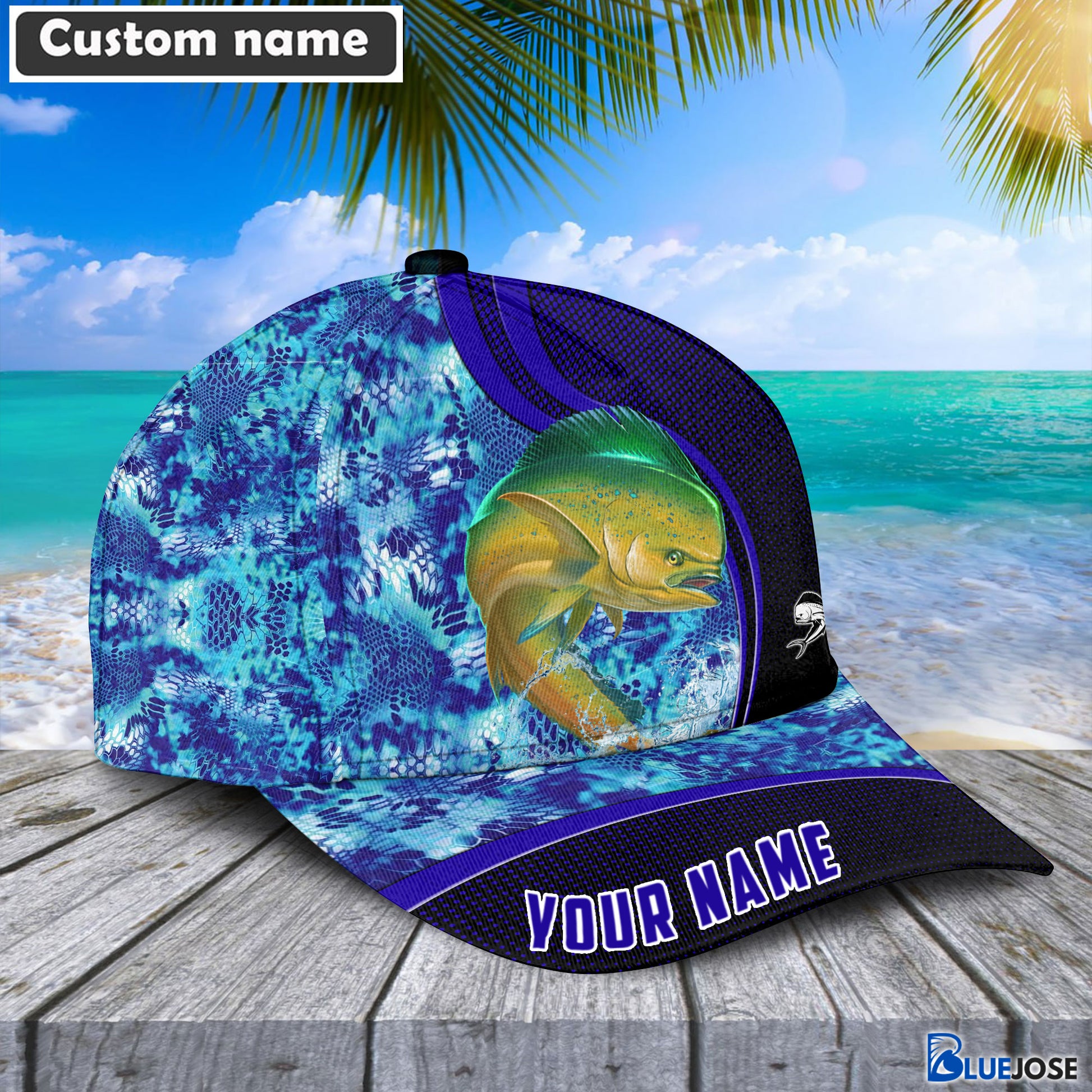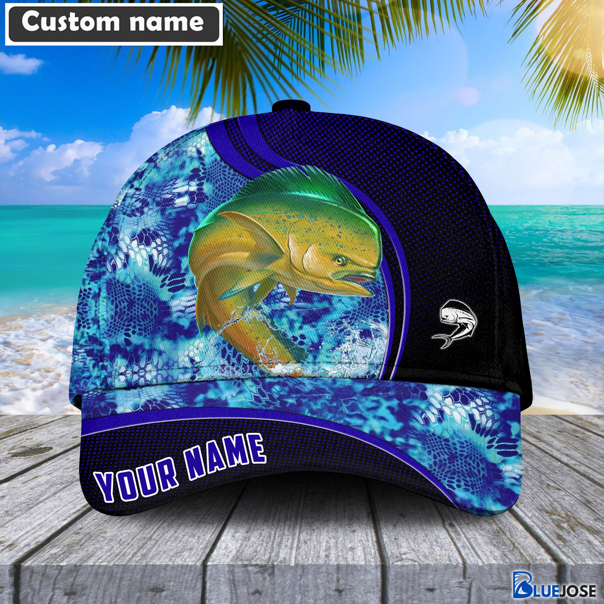 BlueJose Blue Patchy Mahi Mahi Fishing Personalized Cap