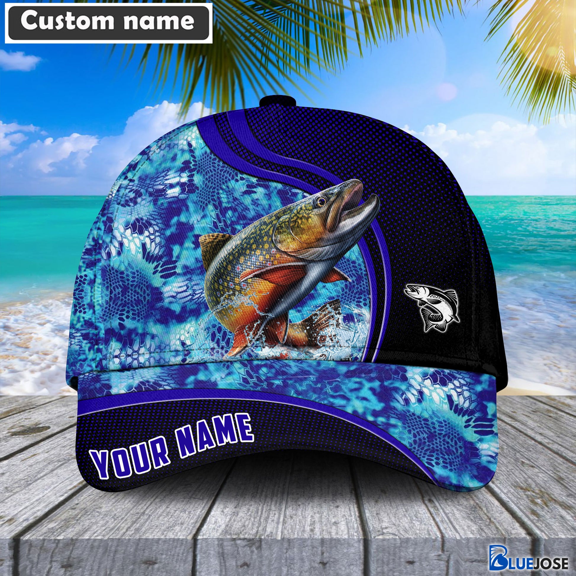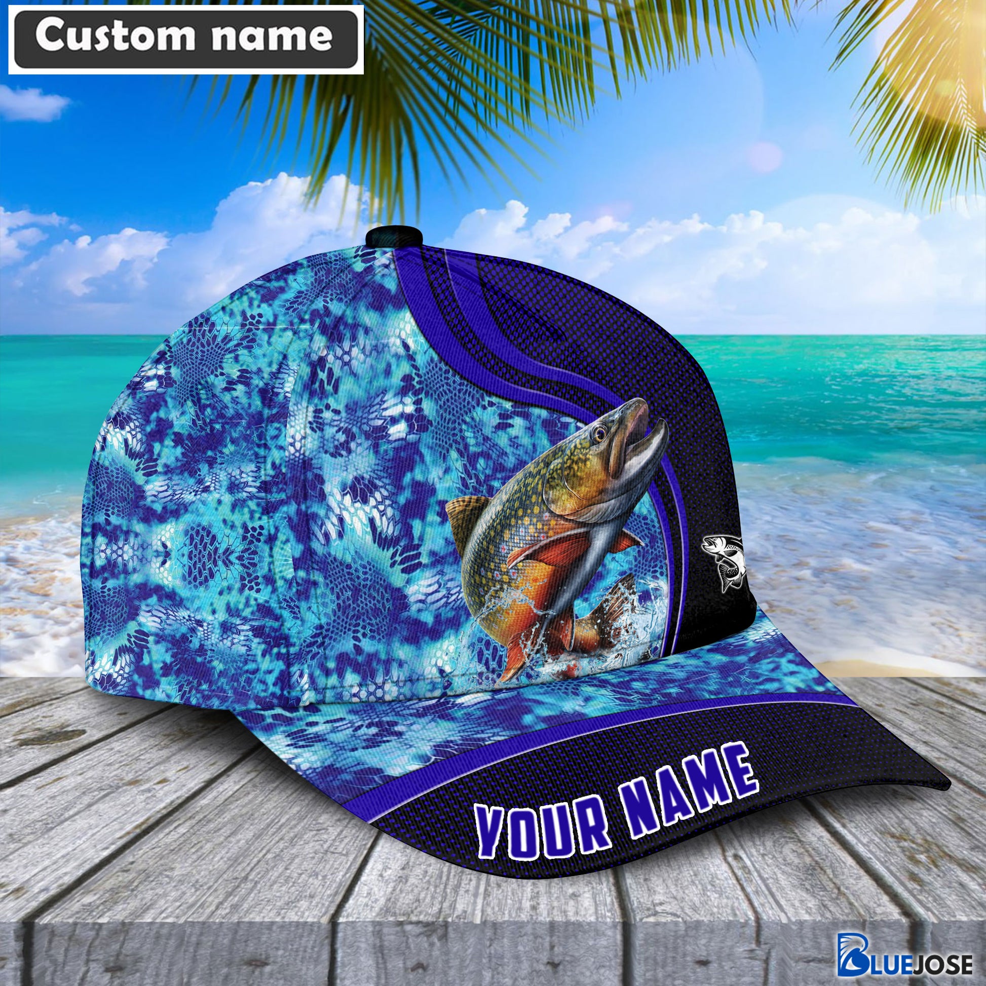 BlueJose Blue Patchy Trout Fishing Personalized Cap