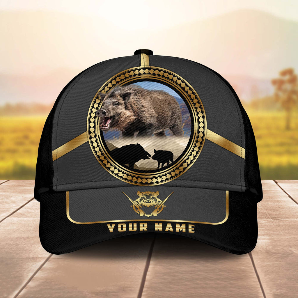 BlueJose Boar Hunting Gold Line Majestic Personalized Name 3D Cap