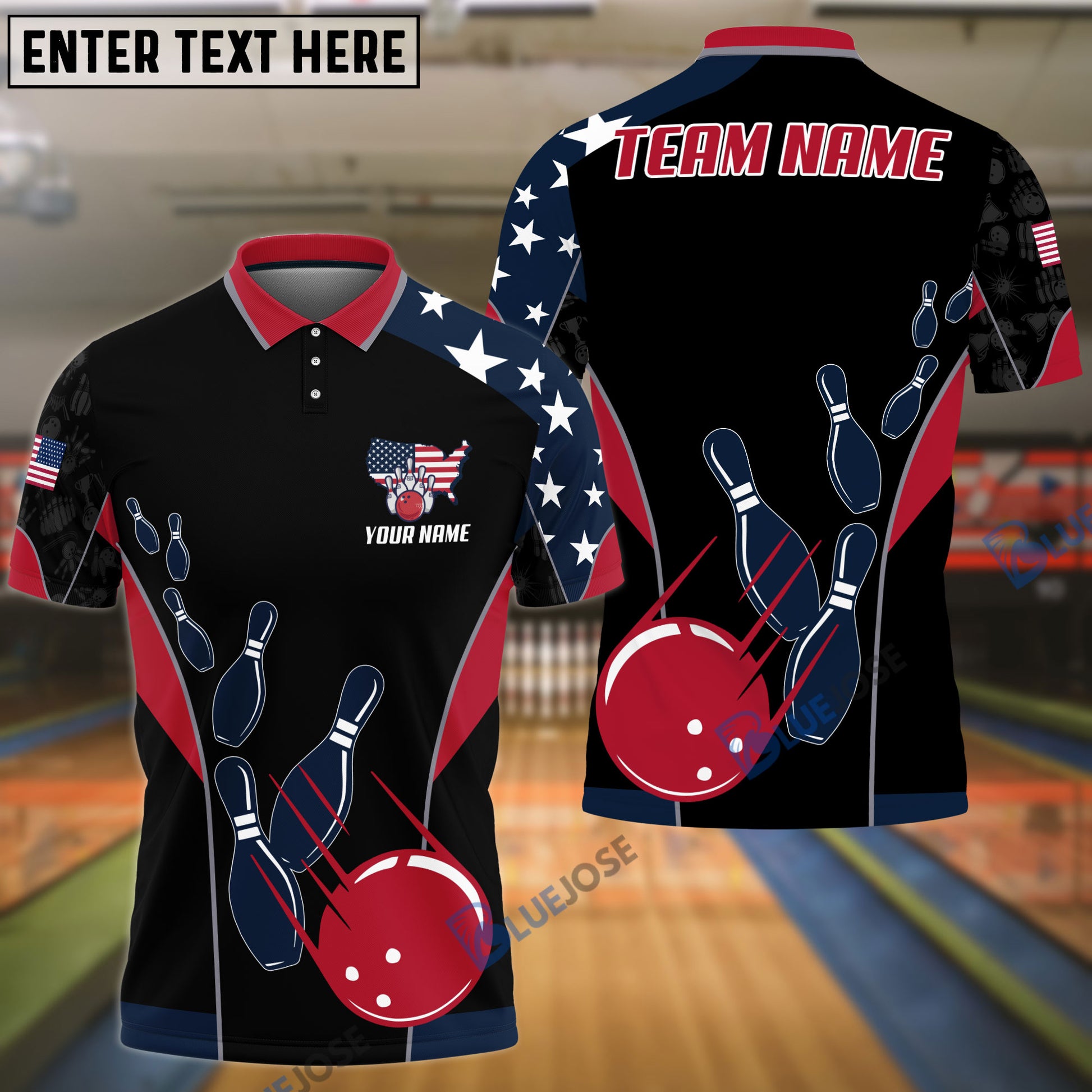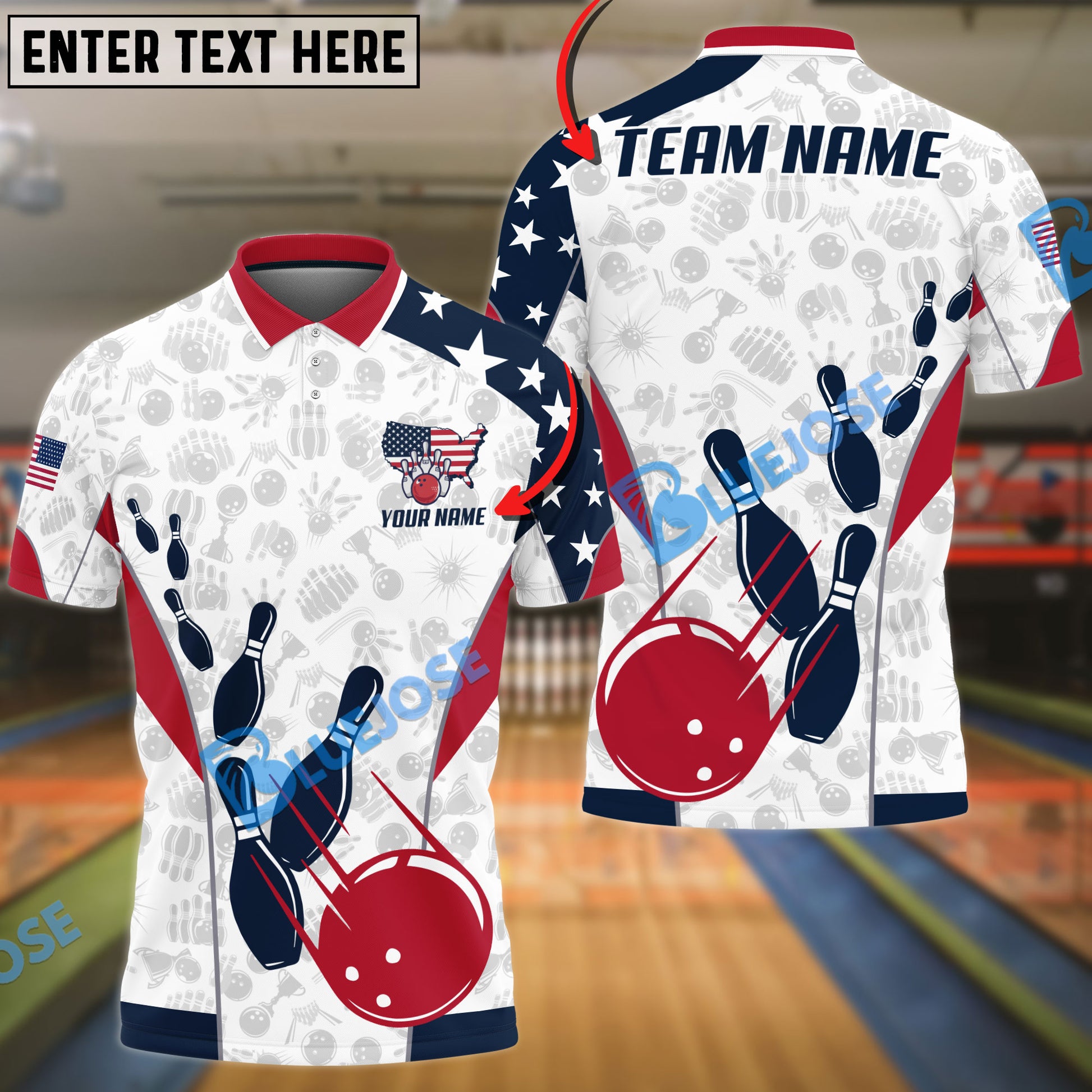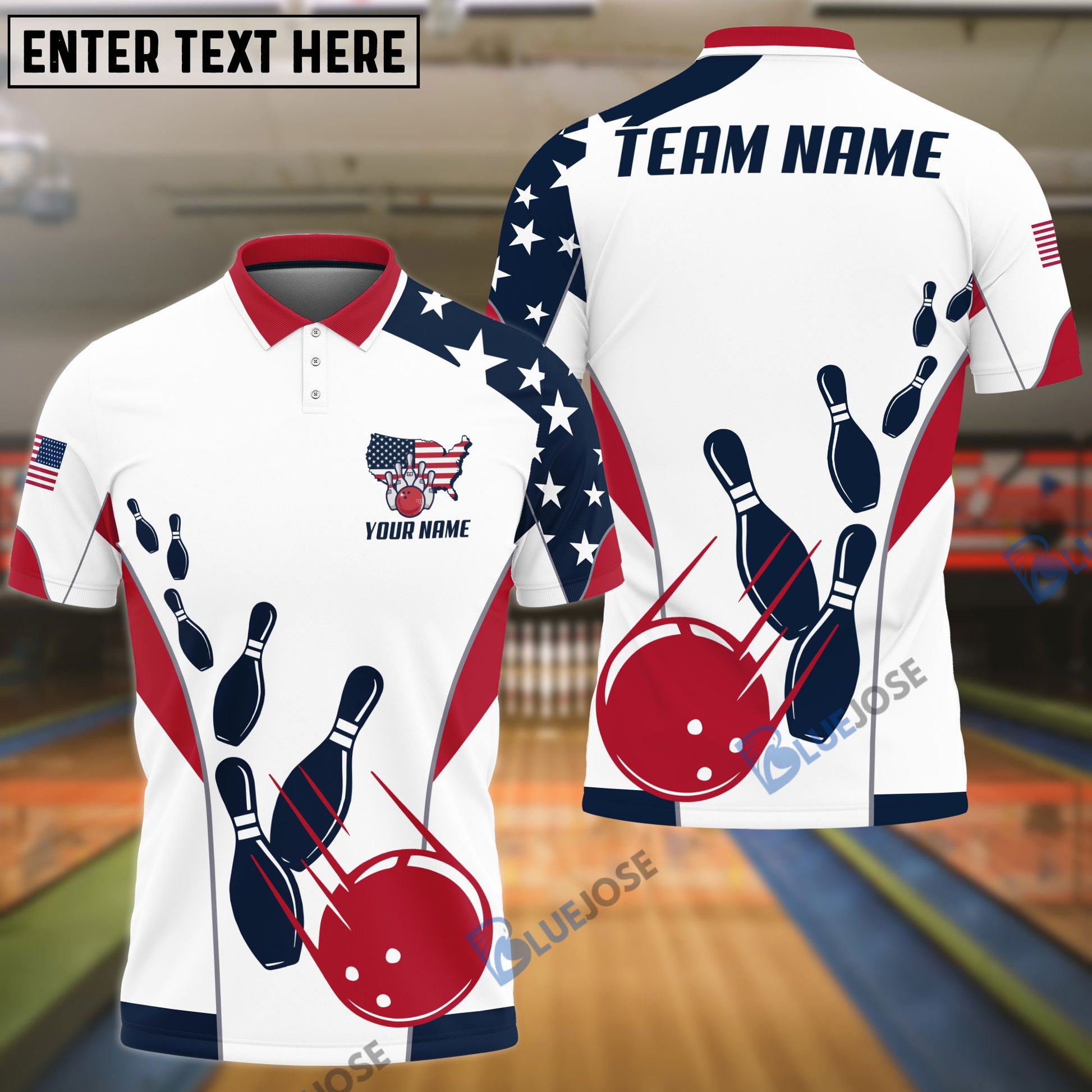 BlueJose Bowling And Pins American Flag Customized Name, Team Name 3D Shirt (4 Options)