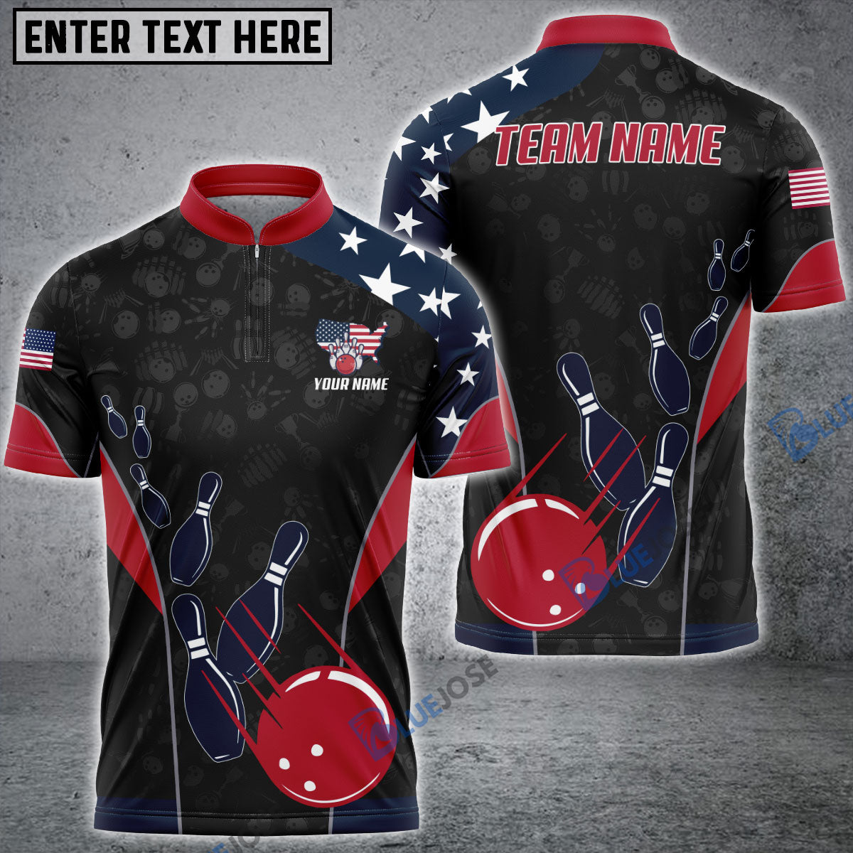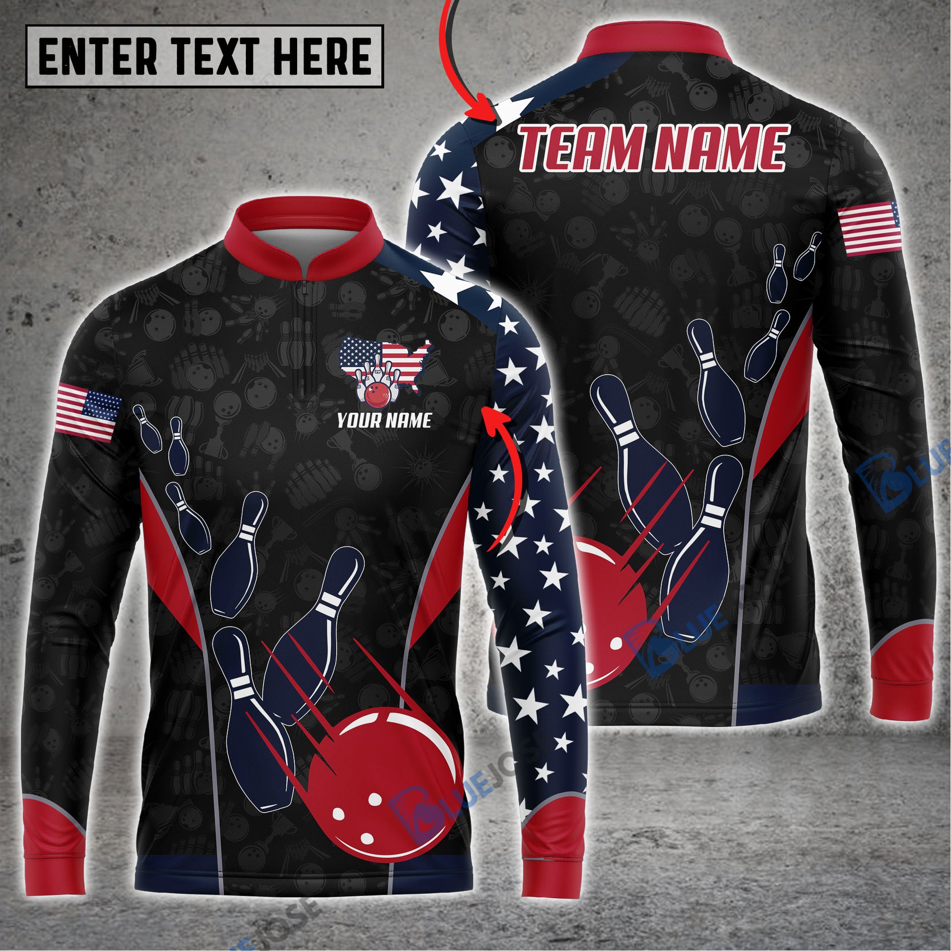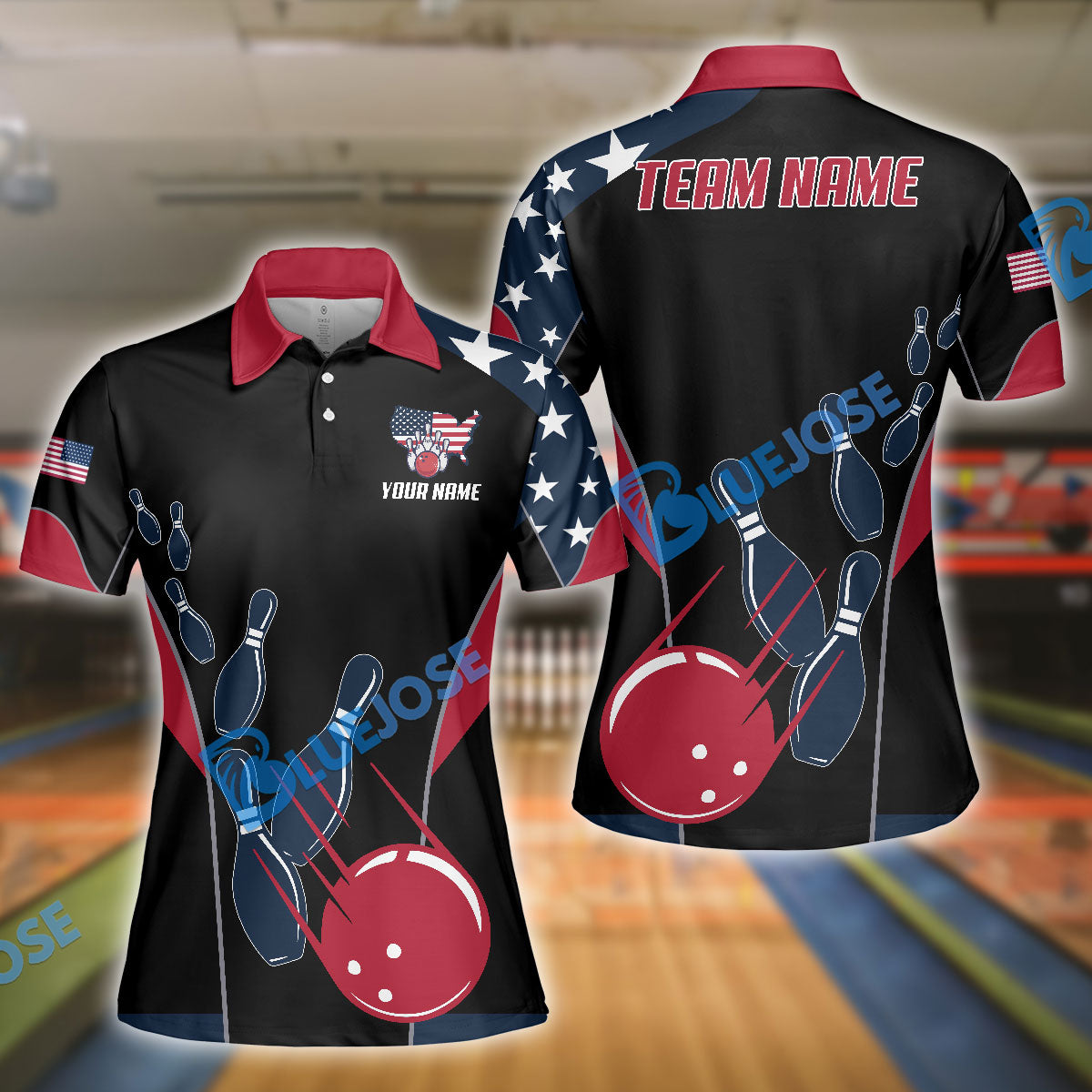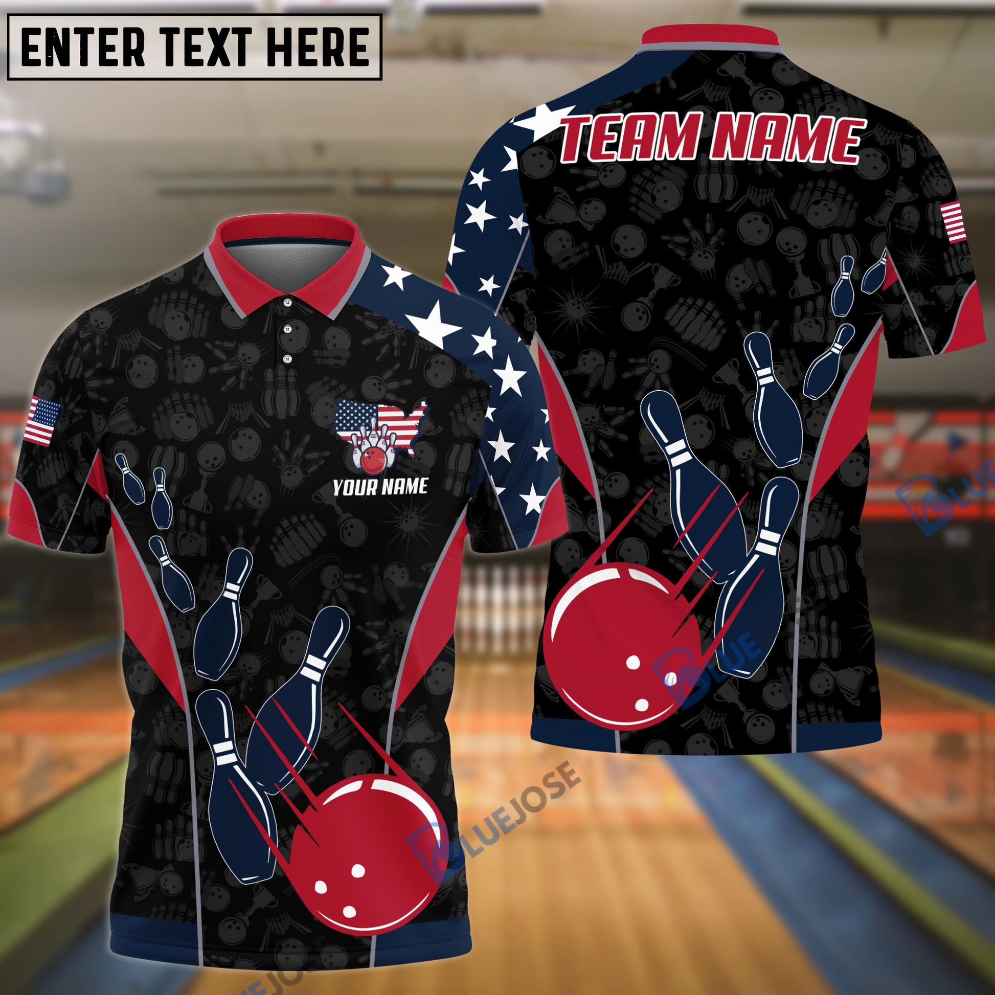 BlueJose Bowling And Pins American Flag Customized Name, Team Name 3D Shirt (4 Options)