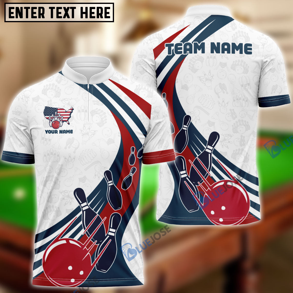 BlueJose Bowling And Pins American Flag Star Customized Name 3D Shirt
