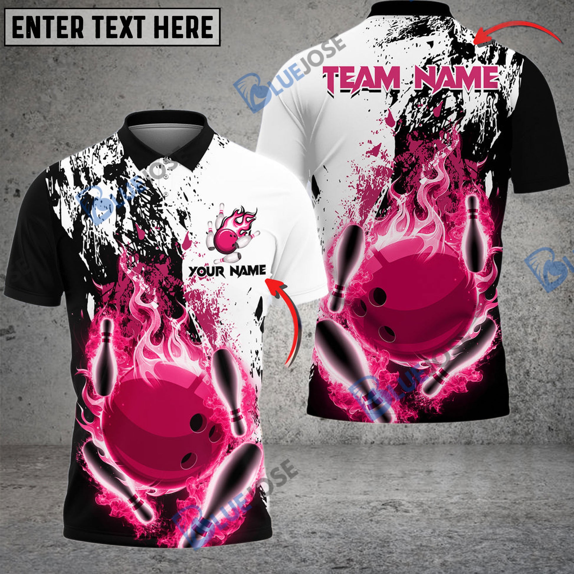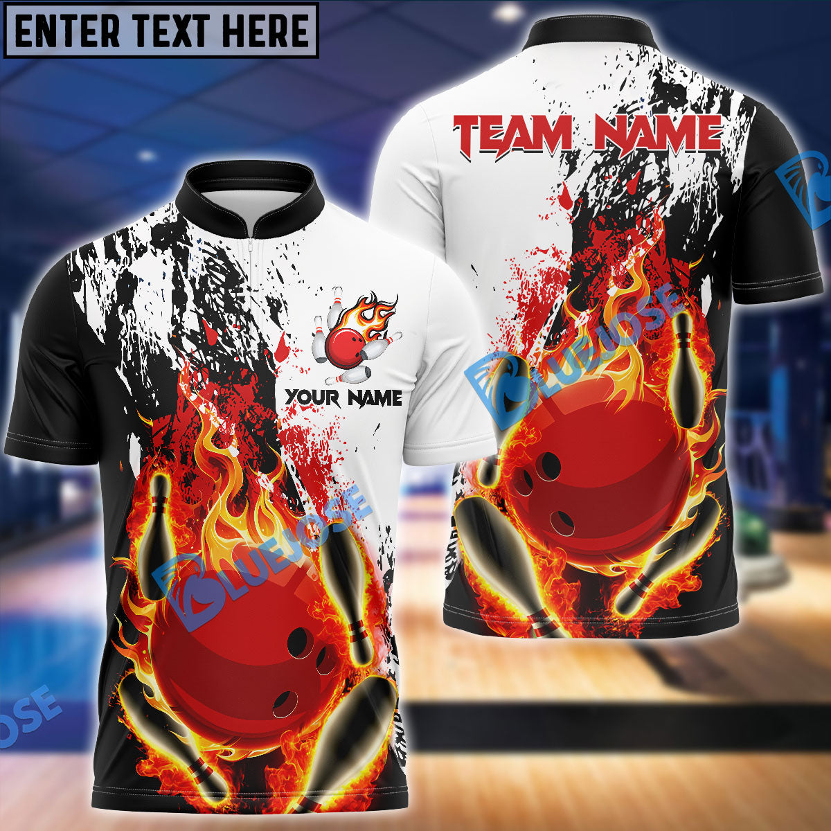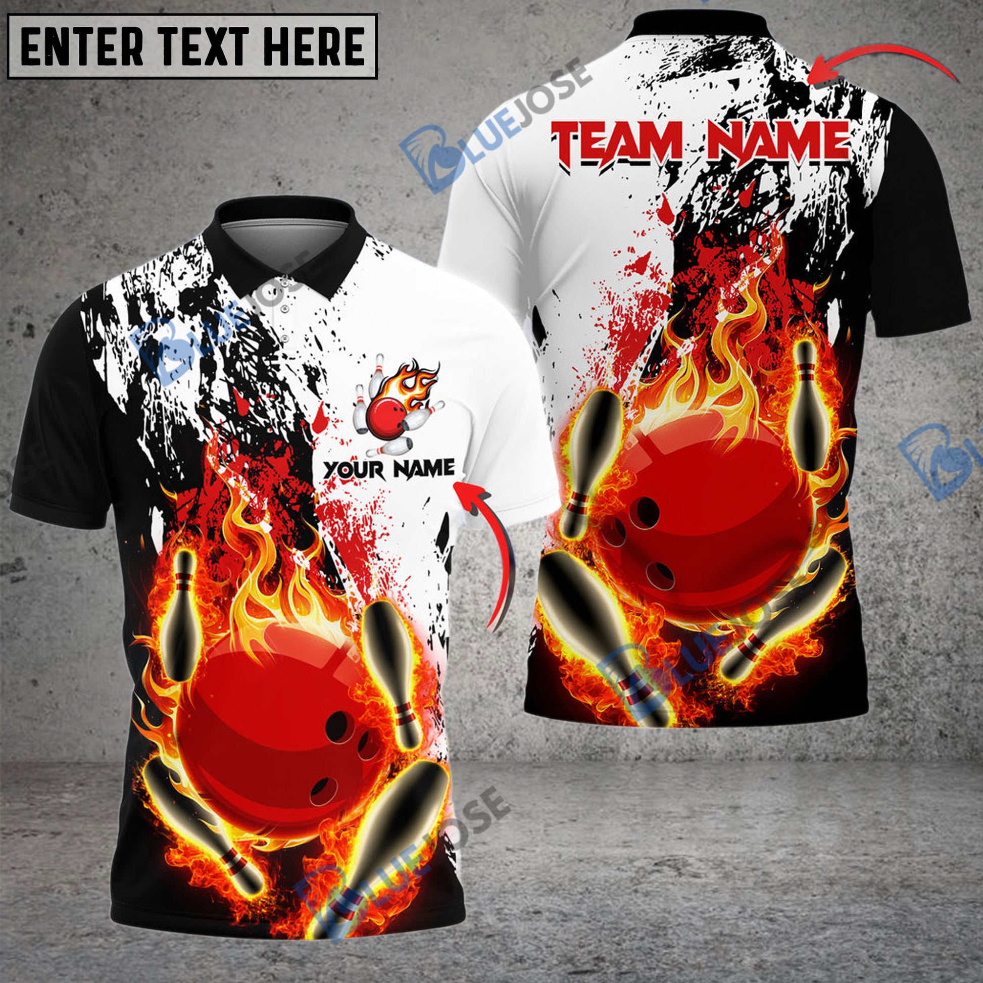 BlueJose Bowling And Pins Burned Fiercely Customized Name 3D Shirt (5 Colors)