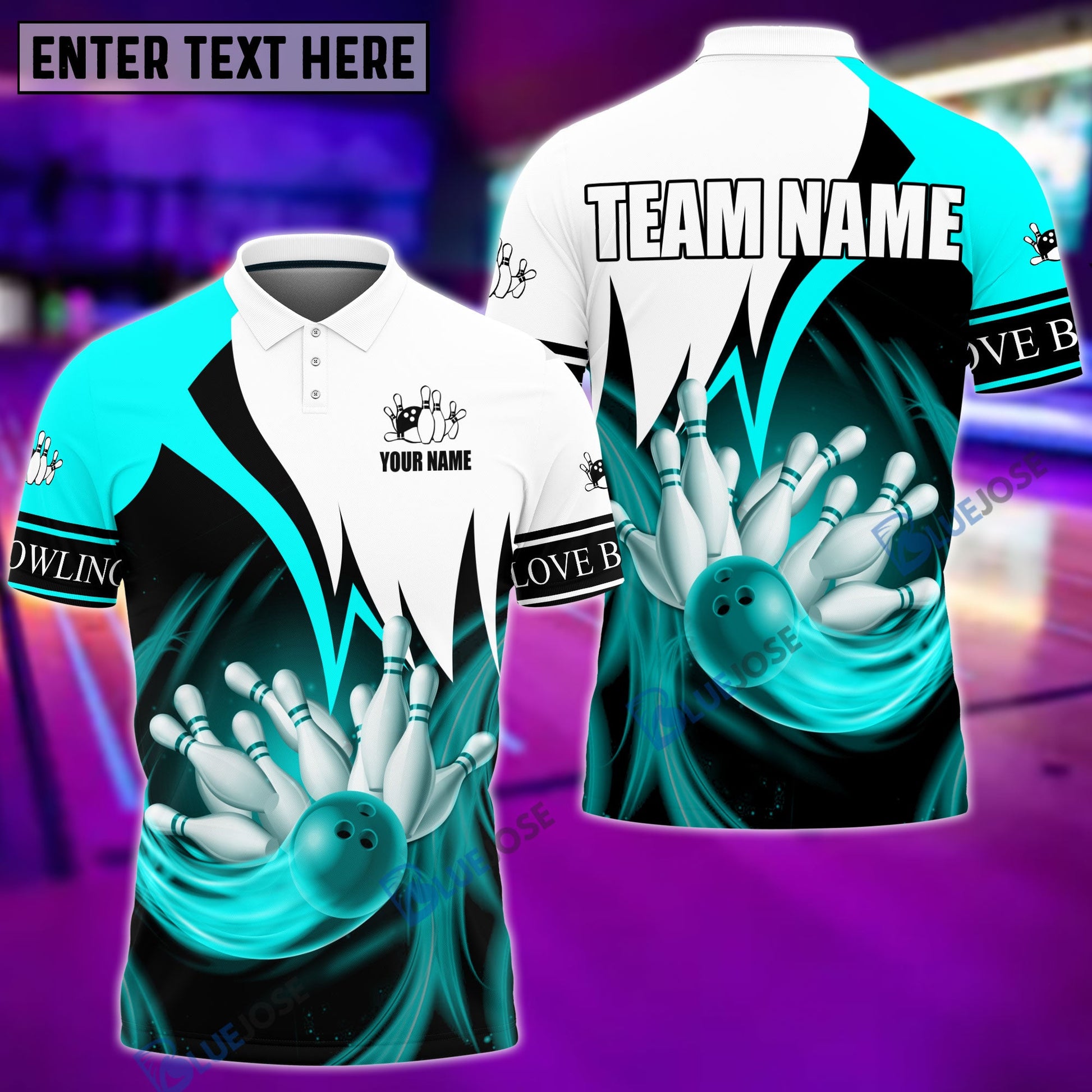 BlueJose Bowling and Pins Color & White Personalized Name, Team Name Unisex Shirt (4 Colors), Personalized Shirts For Bowling Players