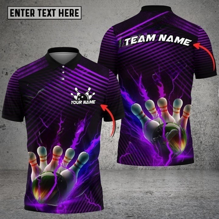 BlueJose Bowling And Pins Colorful Powerful Lightning Customized Name 3D Shirt (4 Colors)
