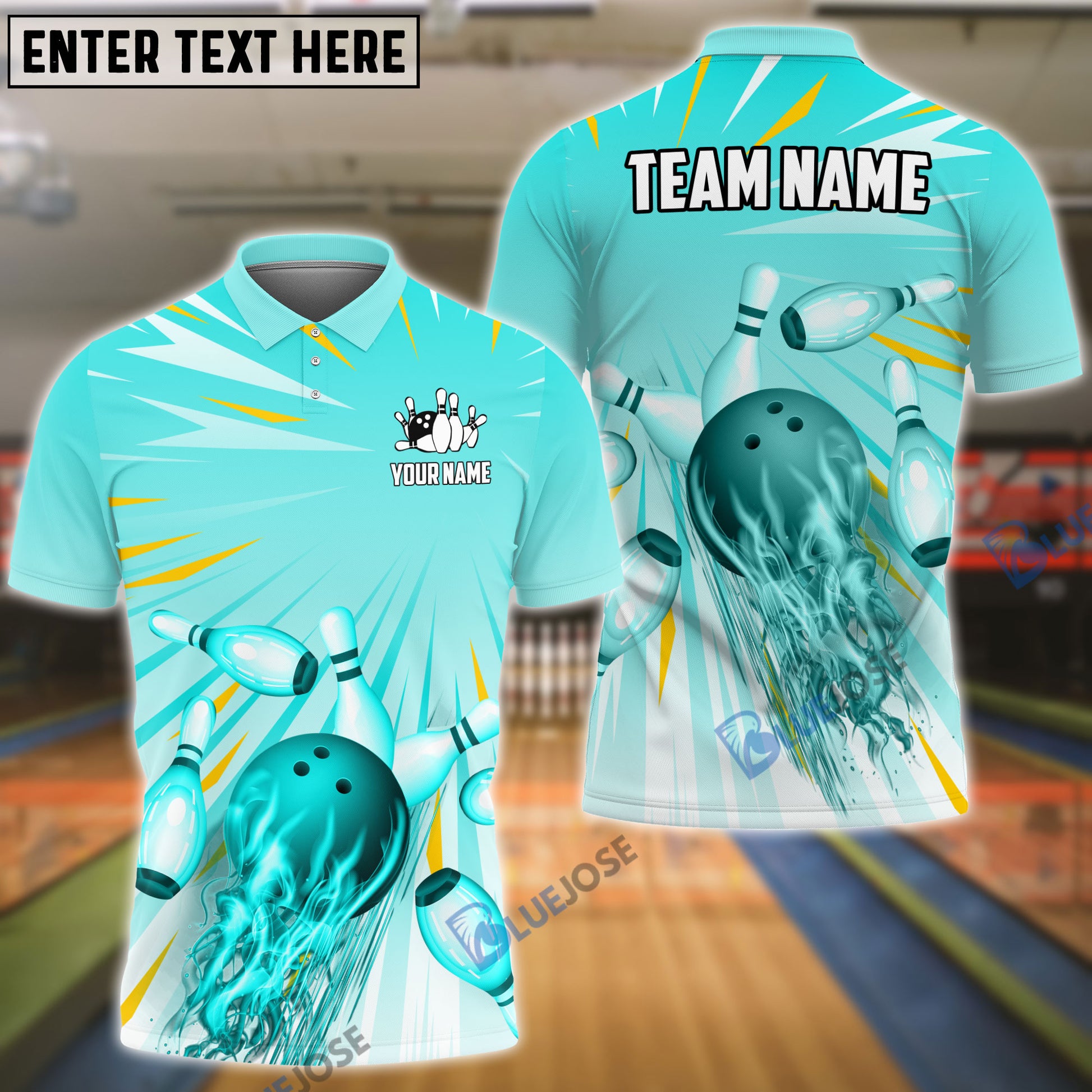 BlueJose Bowling And Pins Cool Light Pattern Customized Name 3D Shirt (5 Colors)