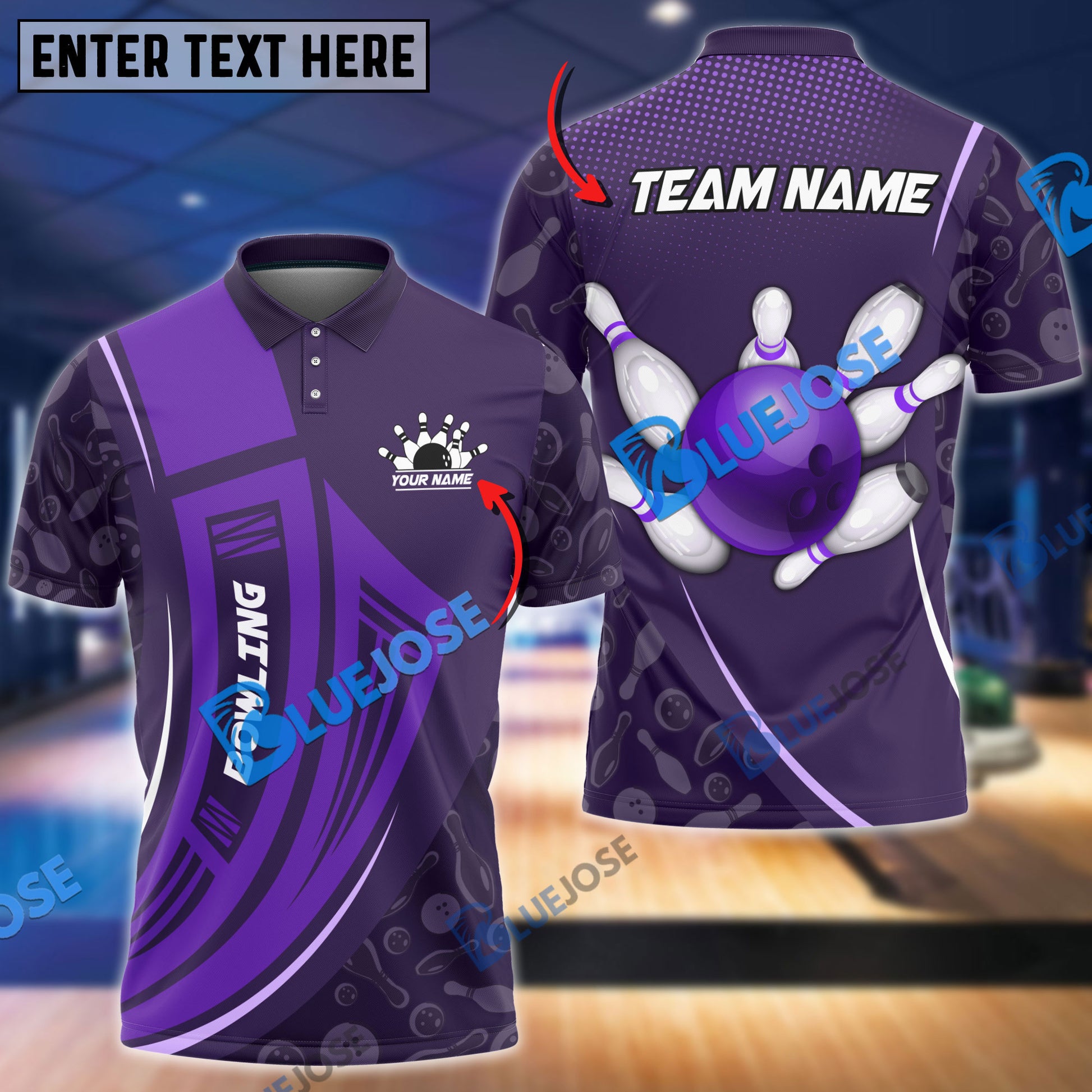 BlueJose Bowling And Pins Curve Shield Customized Name 3D Shirt (4 Colors)