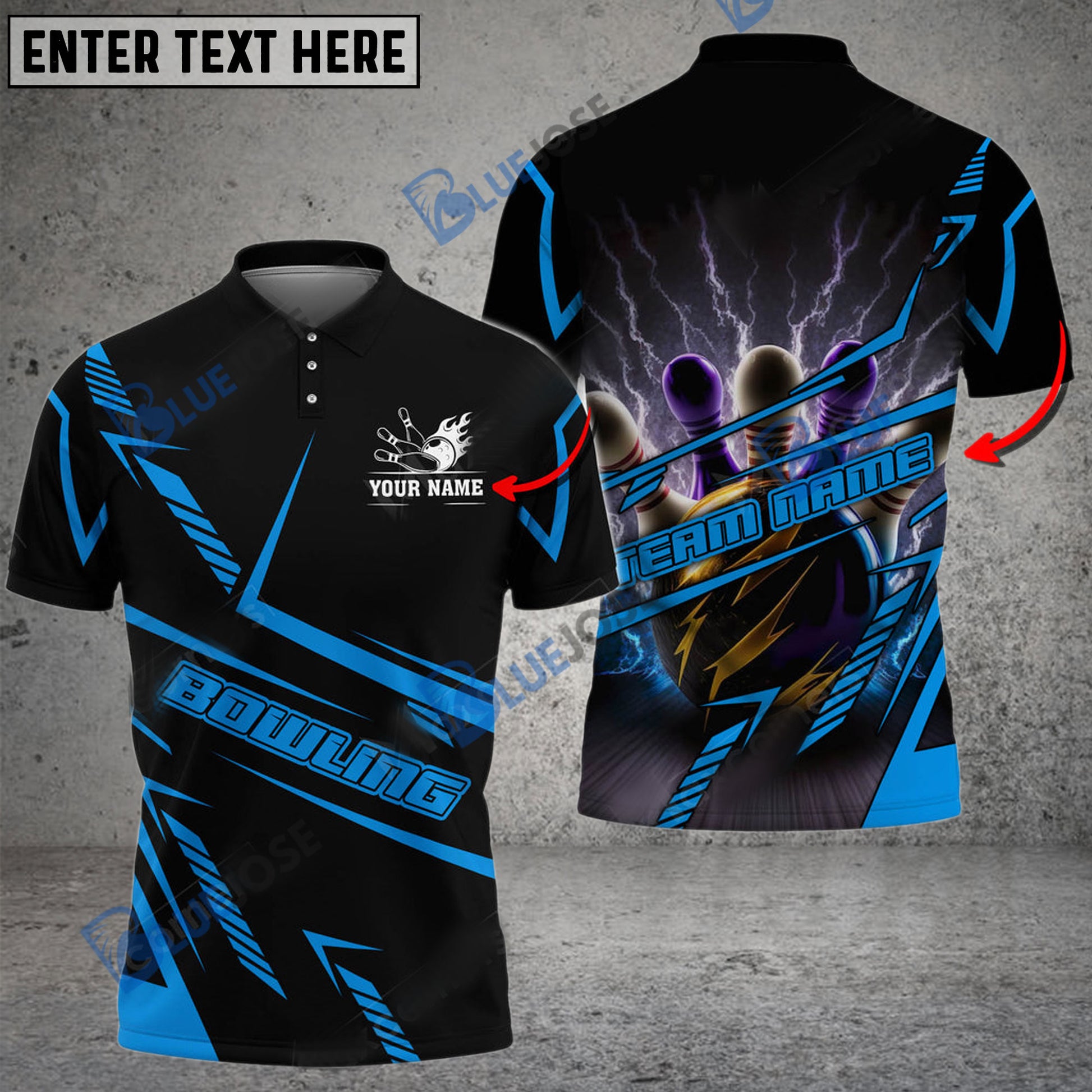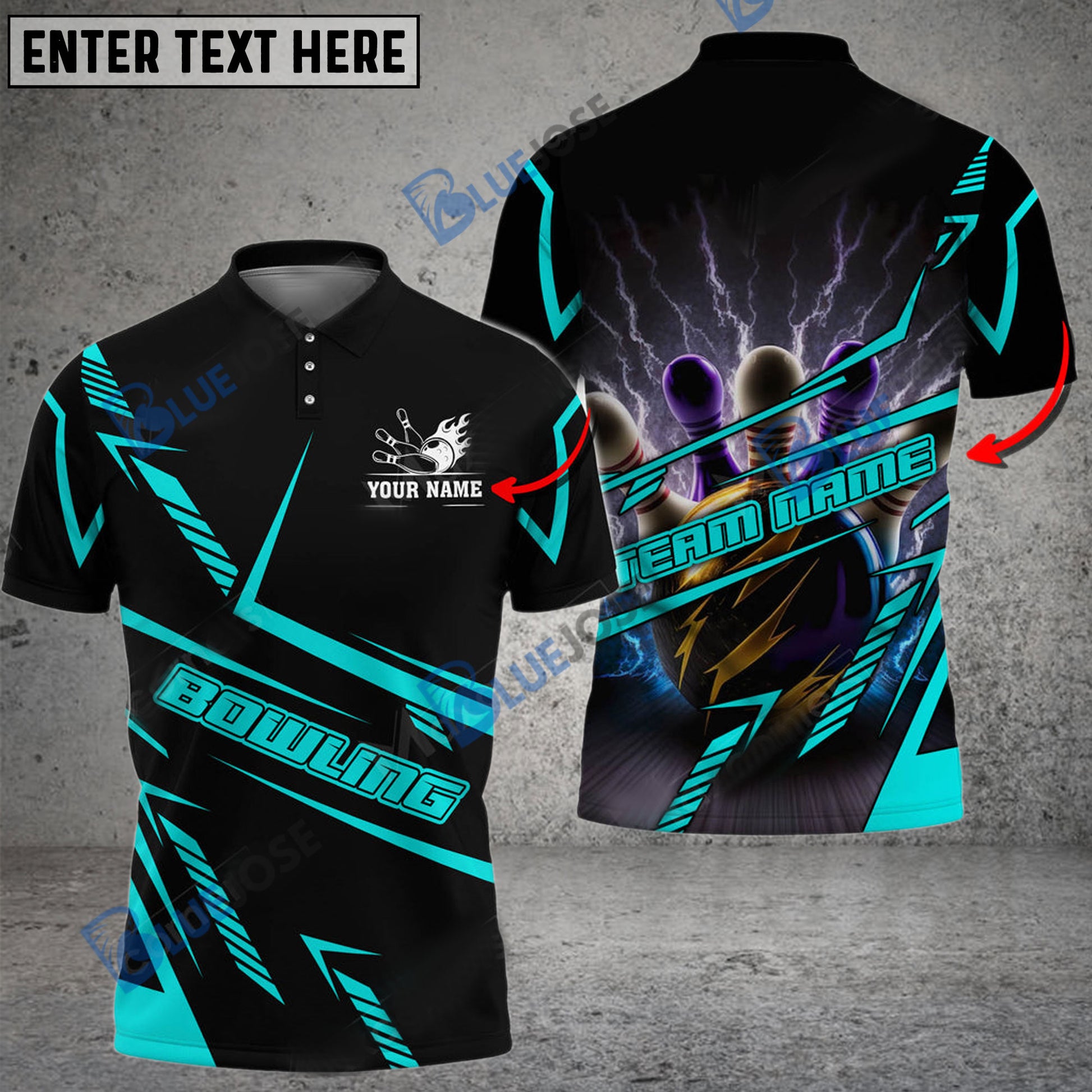 BlueJose Bowling And Pins Cyber Thundering Customized Name 3D Shirt (4 Colors)