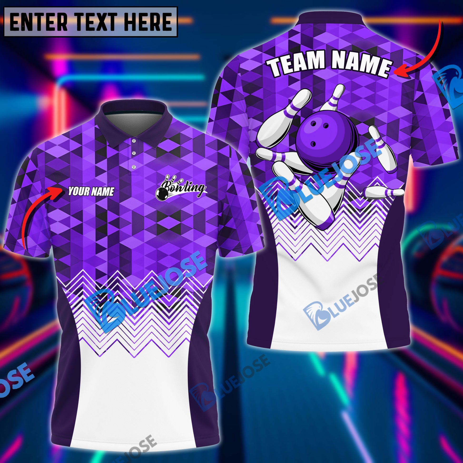 BlueJose Bowling And Pins Diamond Pattern Customized Name 3D Shirt (4 Colors)