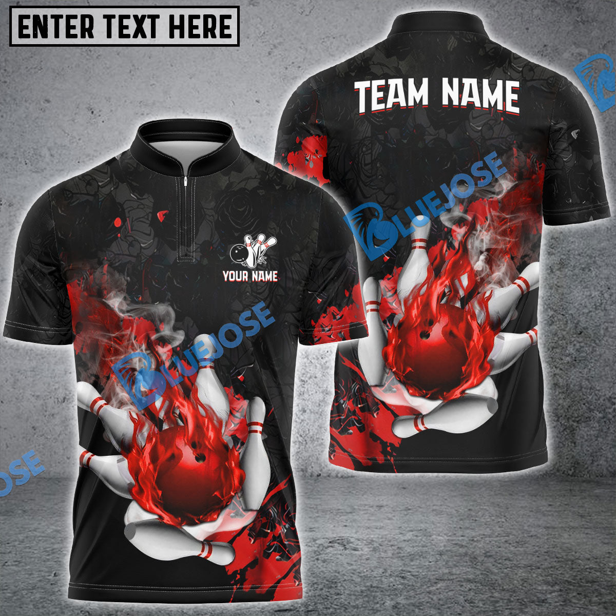 BlueJose Bowling And Pins Fire And Blood Customized Name 3D Shirt (4 Colors)