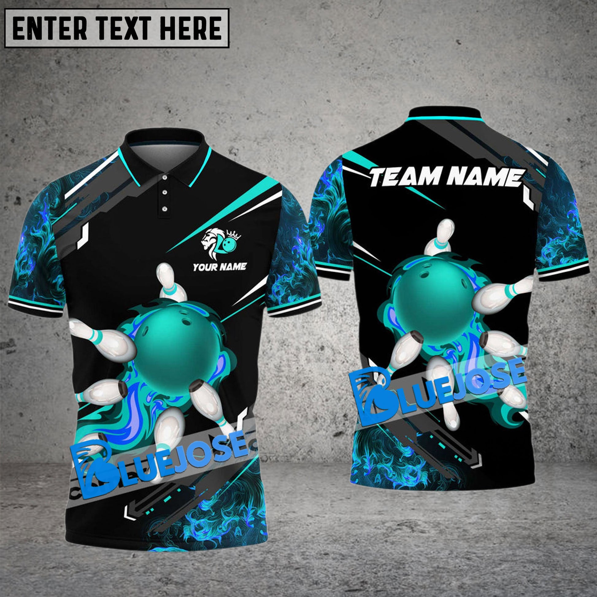 BlueJose Bowling And Pins Flame Smoke Customized Name 3D Shirt (4 Colors)