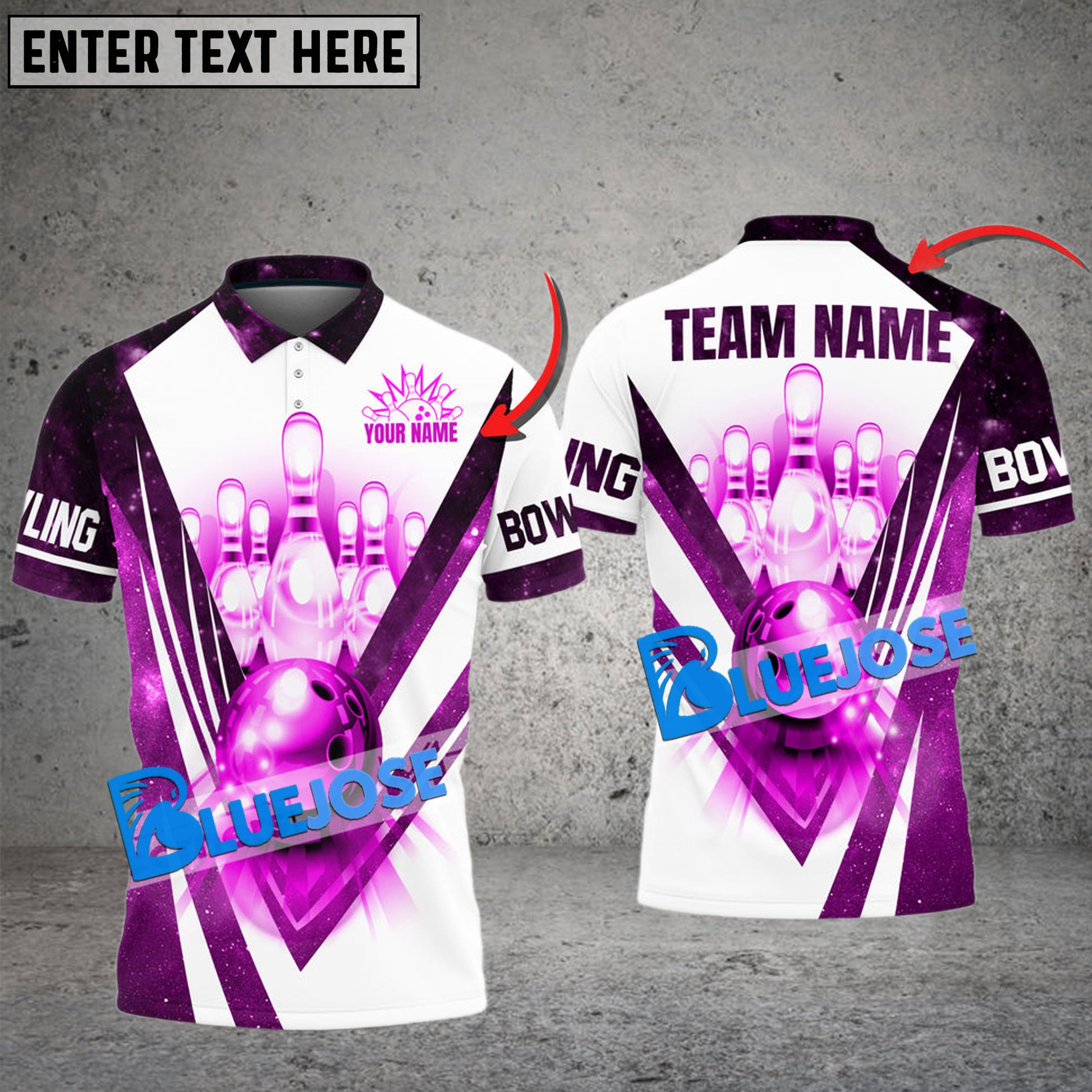 BlueJose Bowling And Pins Galaxy Pattern Customized Name 3D Shirt (4 Colors)