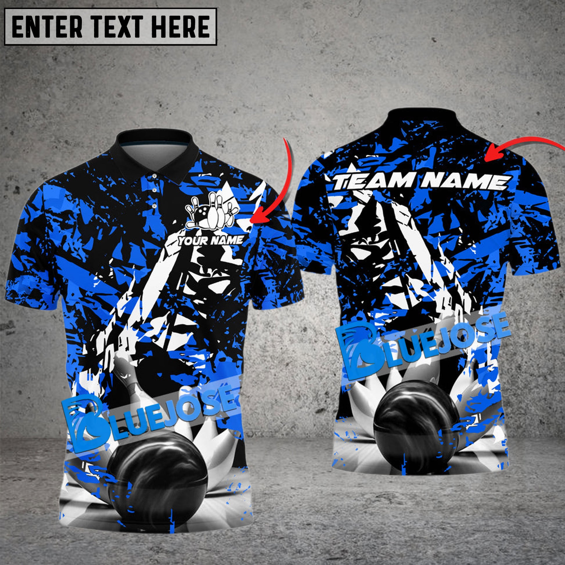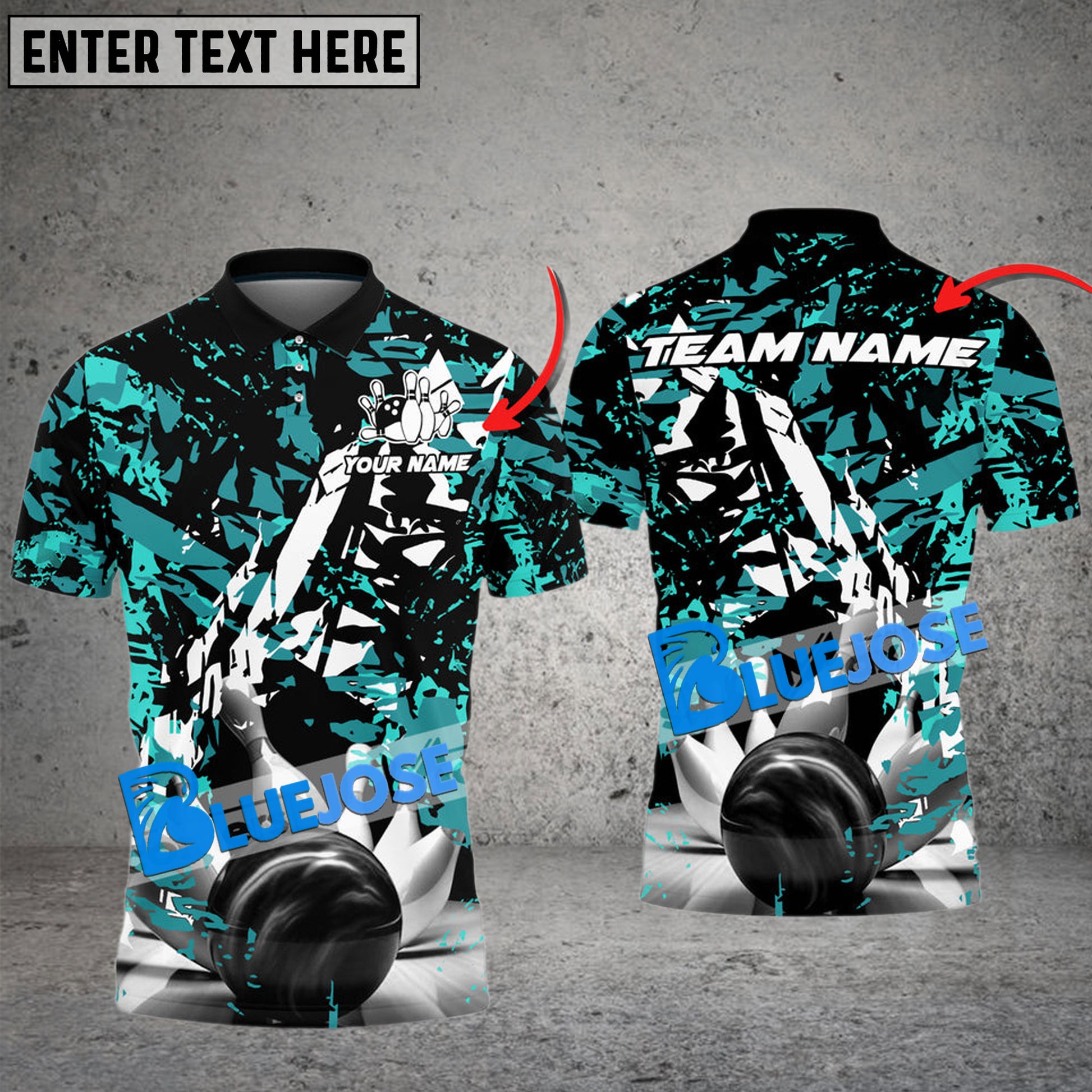 BlueJose Bowling And Pins Grunge Camo Customized Name 3D Shirt (4 Colors)