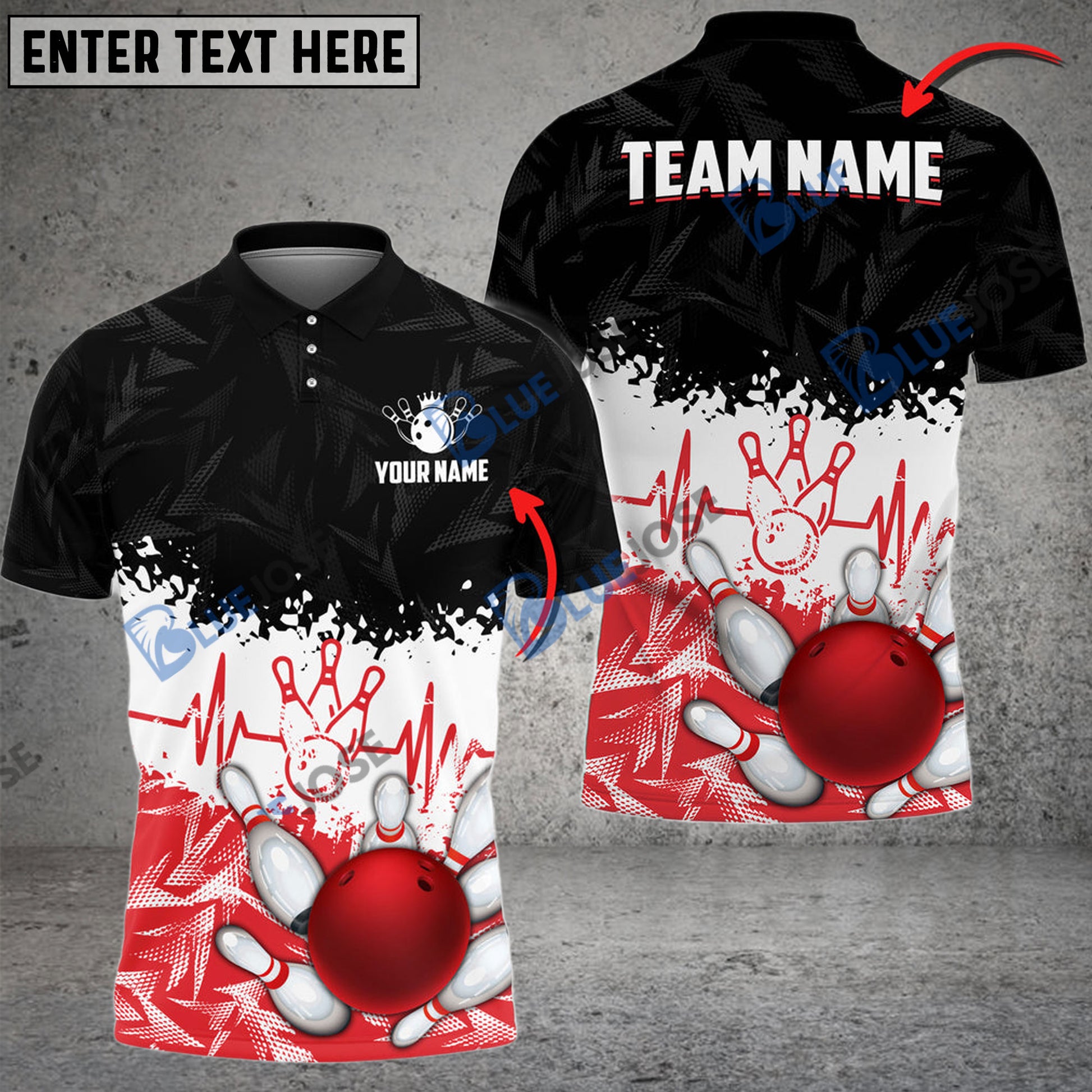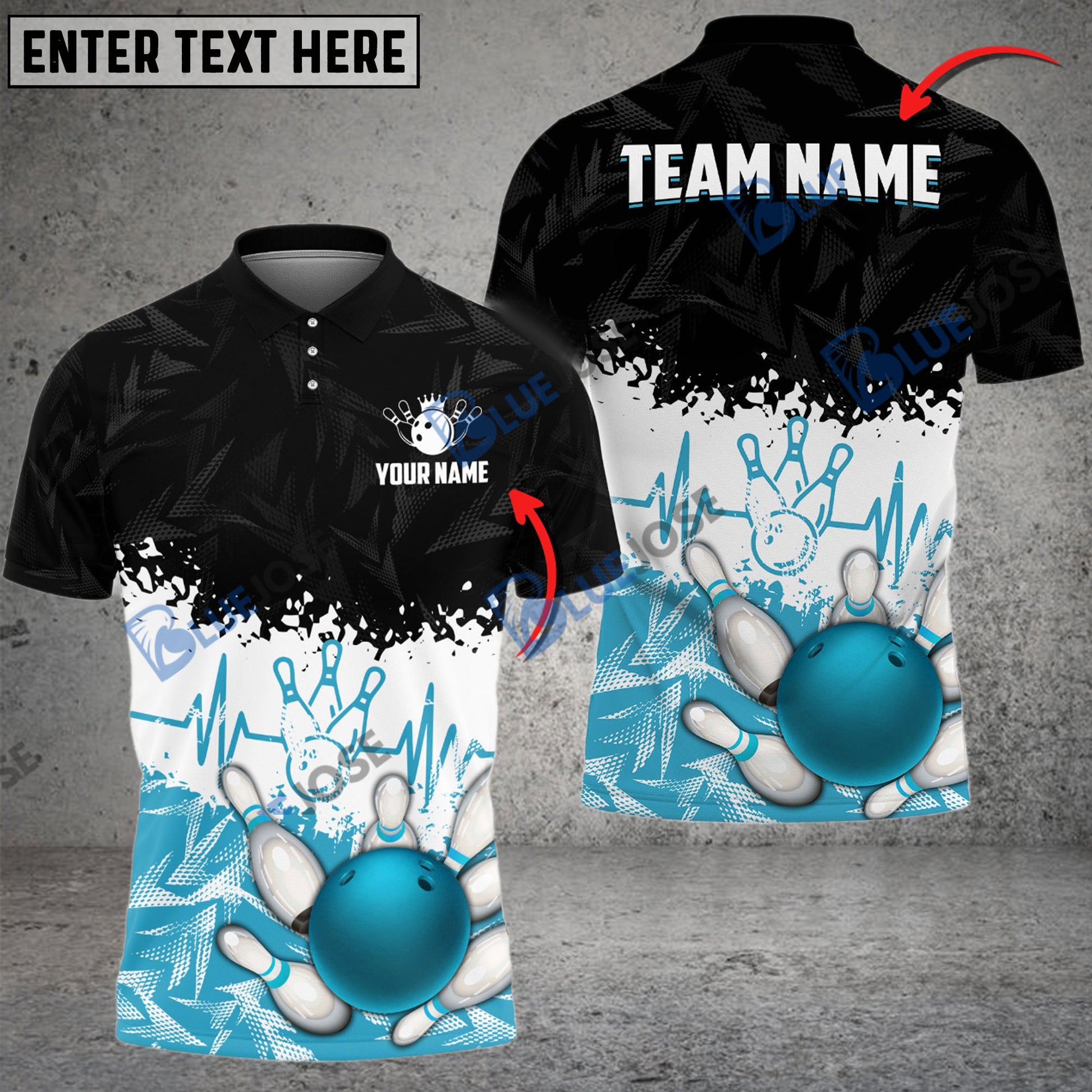 BlueJose Bowling And Pins Heartbeat Customized Name 3D Shirt (4 Colors)