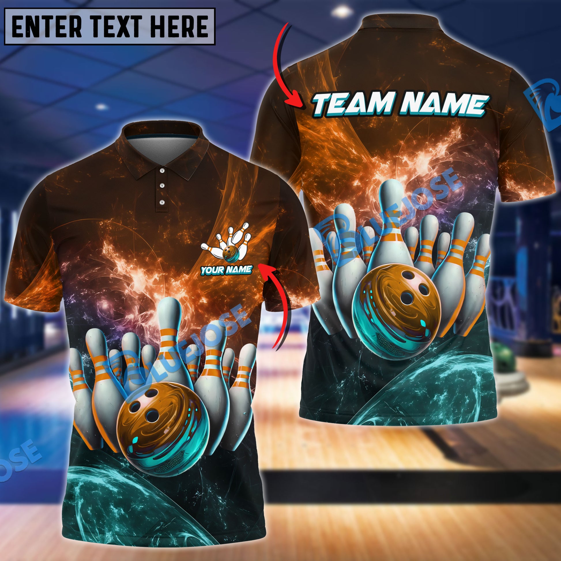 BlueJose Bowling And Pins Light Crash Customized Name 3D Shirt (4 Colors)