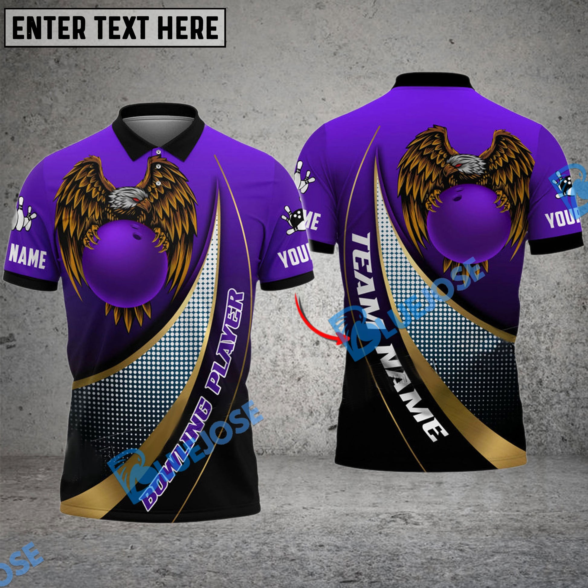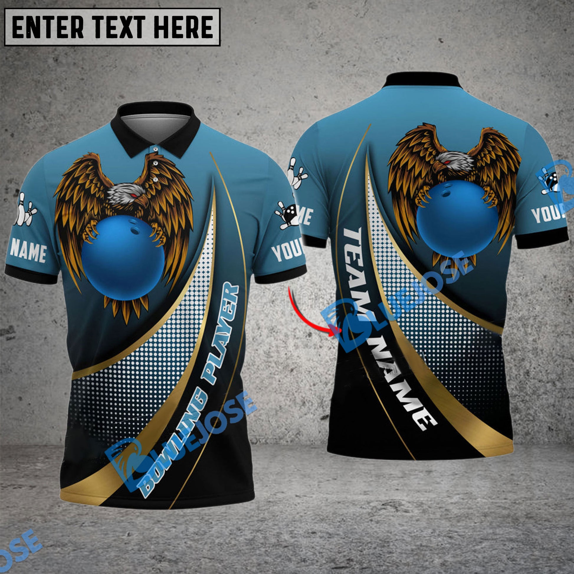 BlueJose Bowling And Pins Red Eyes Eagle Customized Name 3D Shirt (4 Colors)