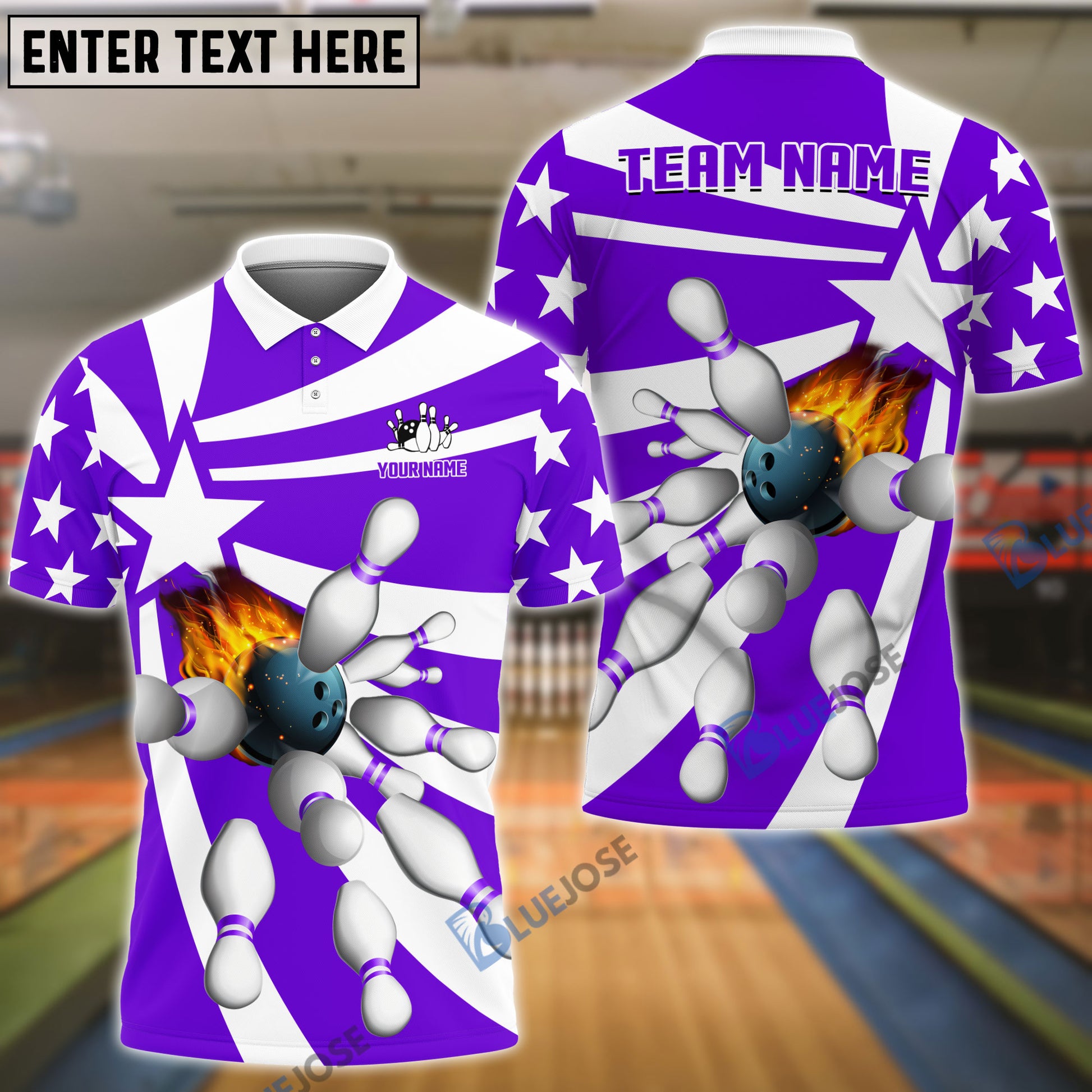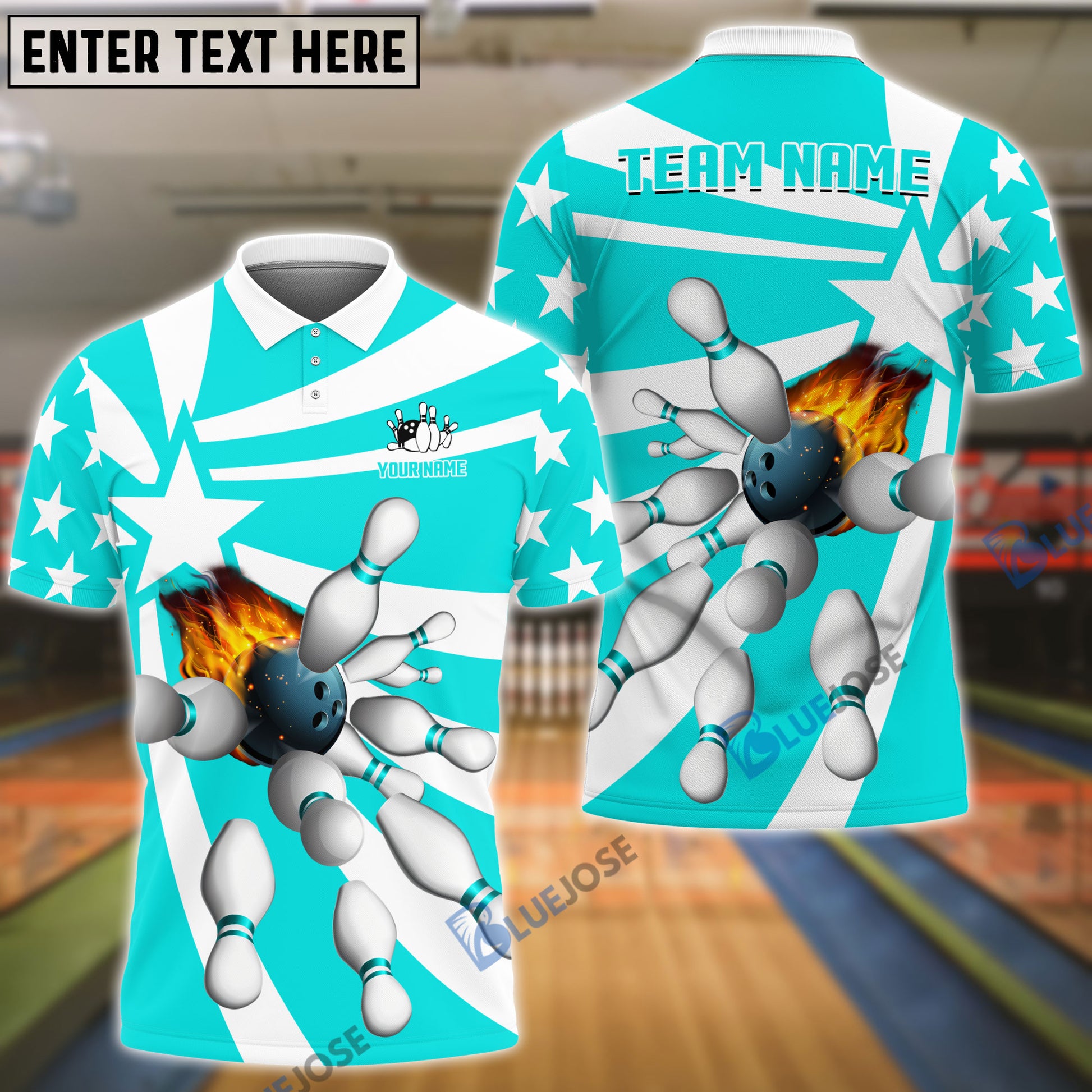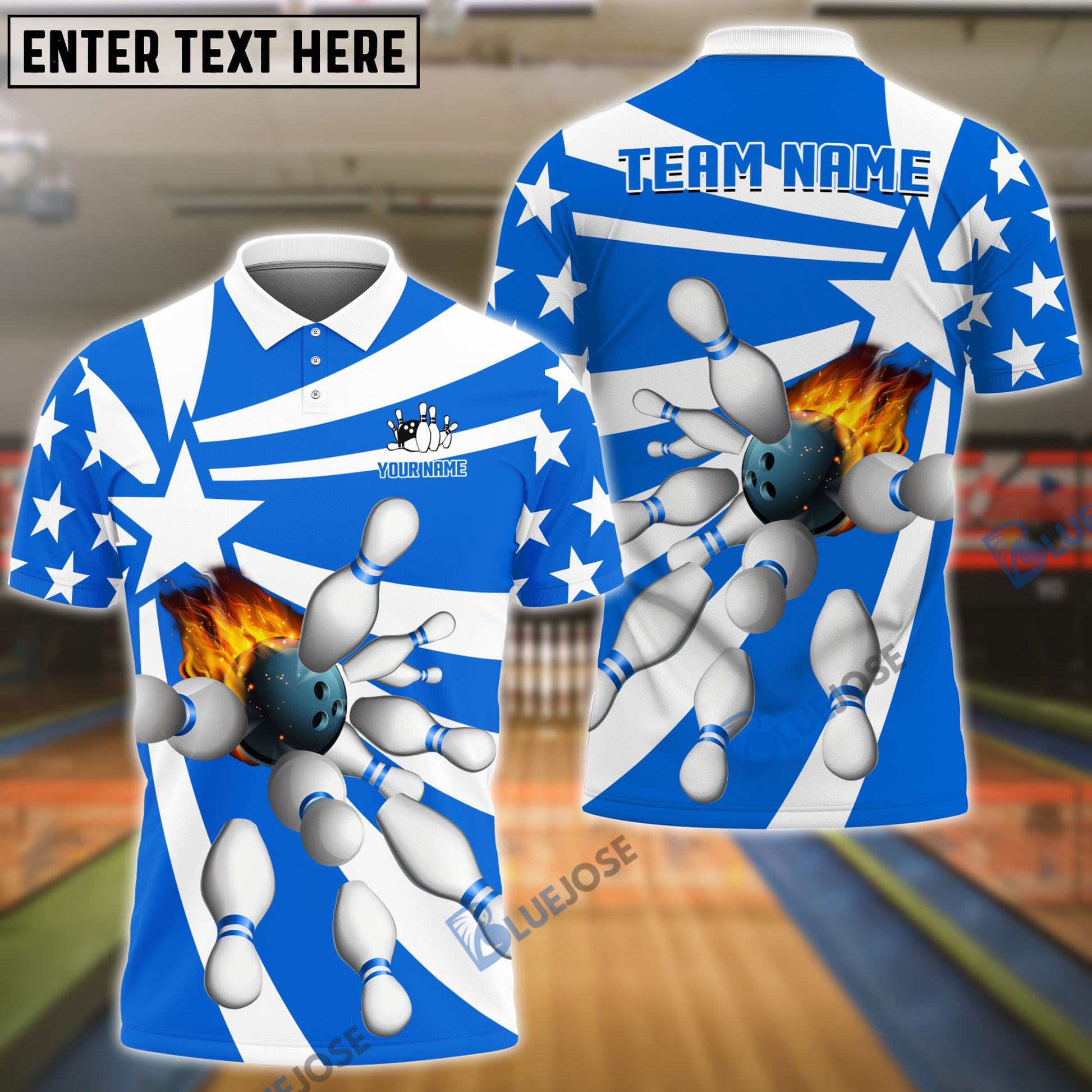 BlueJose Bowling And Pins Star Pattern Customized Name 3D Shirt (5 Colors)