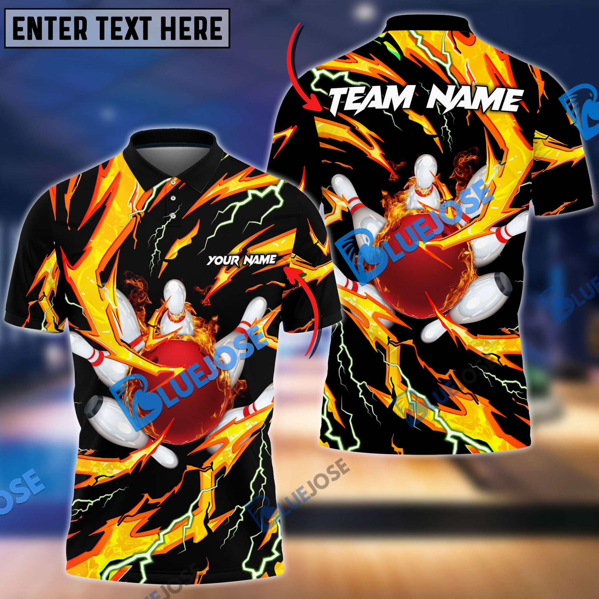 BlueJose Bowling And Pins Super Thunder Aura Customized Name 3D Shirt (4 Colors)