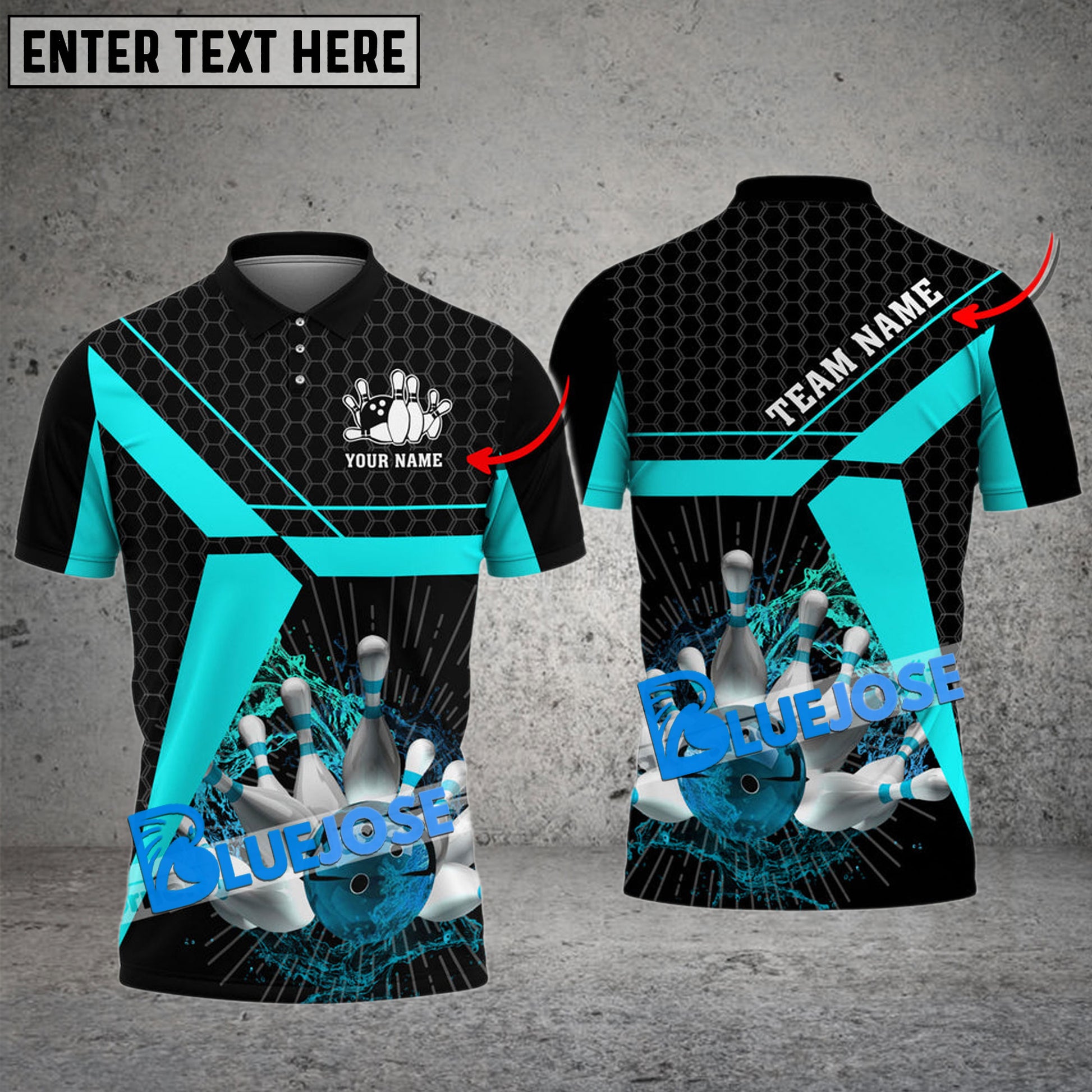BlueJose Bowling And Pins Water Hexagon Pattern Customized Name 3D Shirt (4 Colors)