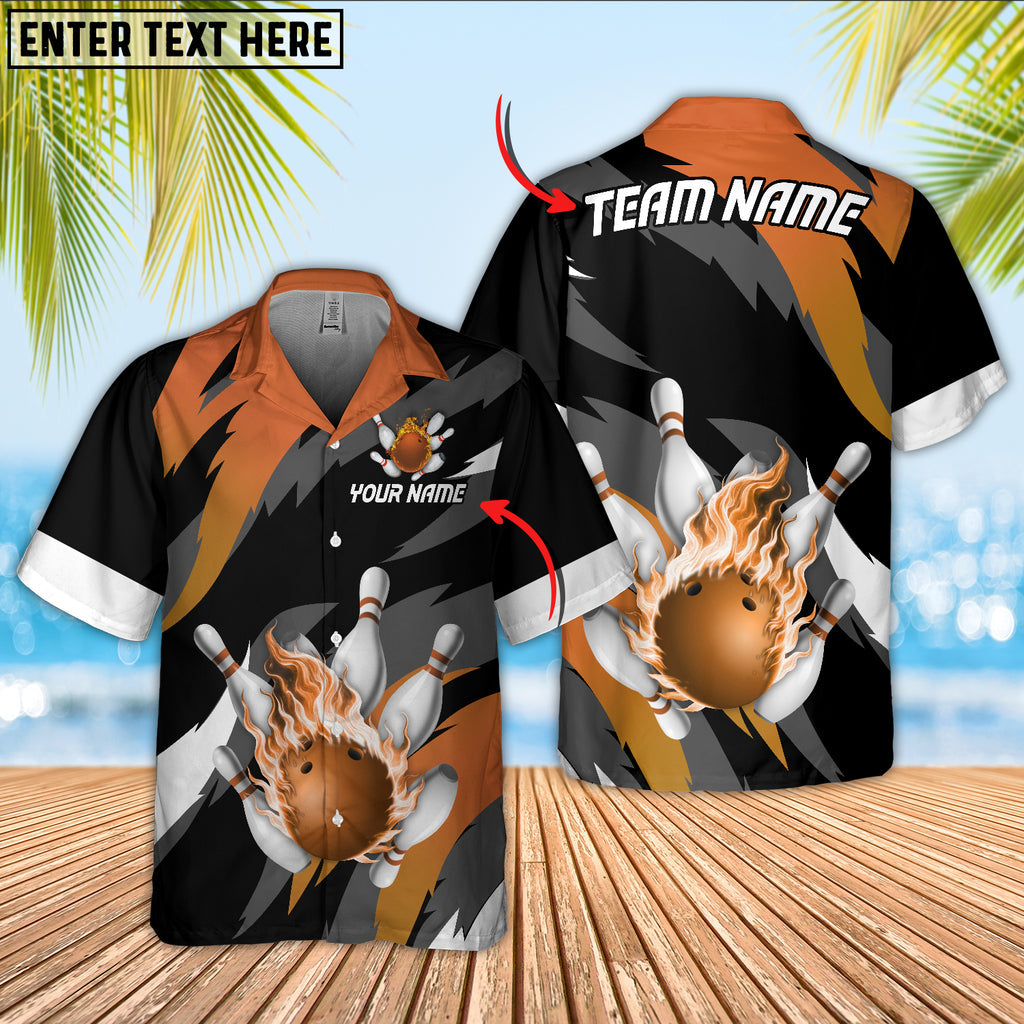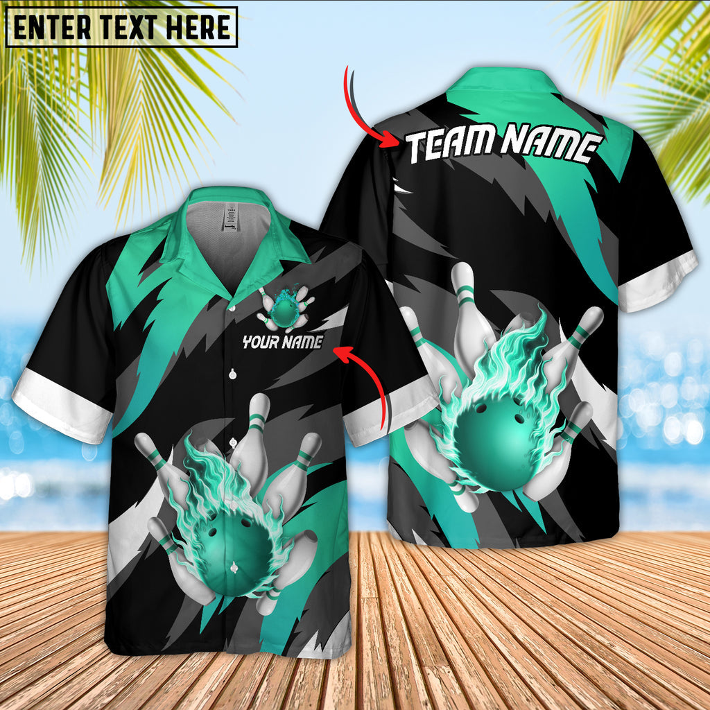 BlueJose Bowling Ball And Pins Ultimate Fire Multicolor Option Customized Name Hawaiian Shirt (6 Colors)
