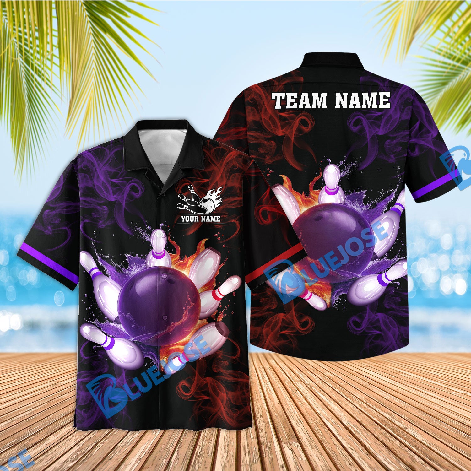 BlueJose Bowling Ball And Pins Equal Battle Multicolor Option Customized Name Hawaiian Shirt (4 Colors)